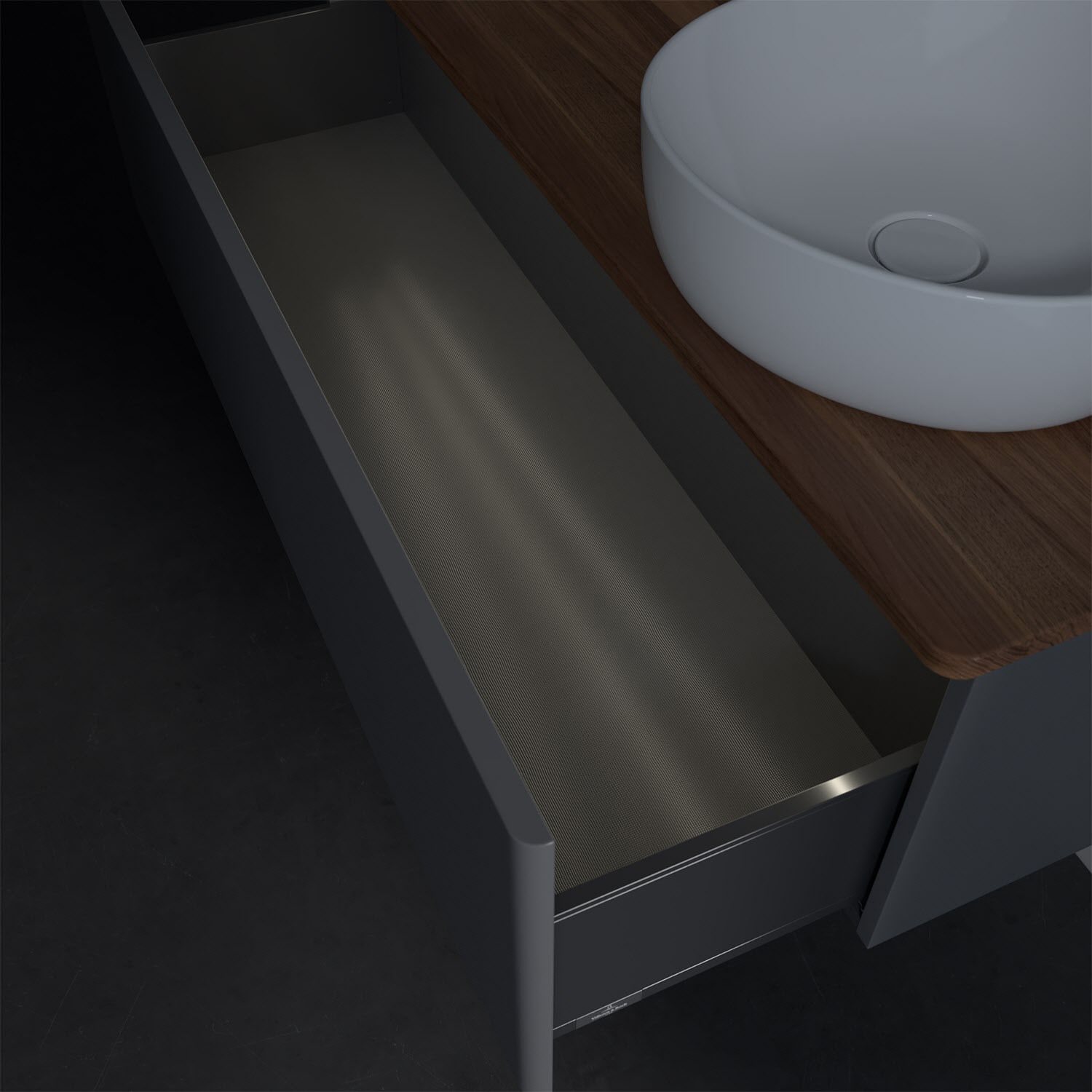 Villeroy & Boch Antao Waschbeckenunterschrank, 120 x 36 cm, 1 Auszug mit LED-Licht, Front ohne Struktur, mit Hahnloch, für Waschtisch rechts