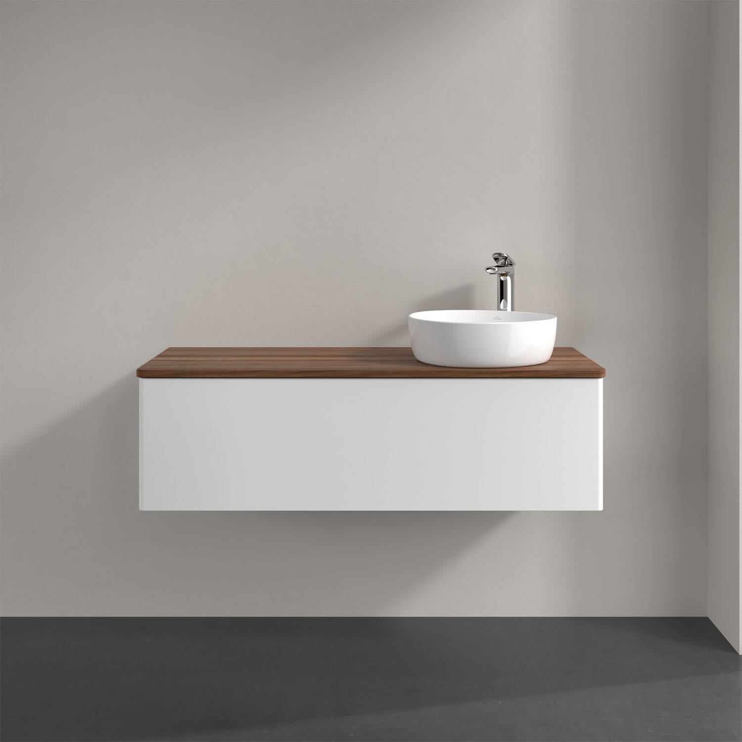 Villeroy & Boch Antao Waschbeckenunterschrank, 120 x 36 cm, 1 Auszug mit LED-Licht, Front ohne Struktur, mit Hahnloch, für Waschtisch rechts