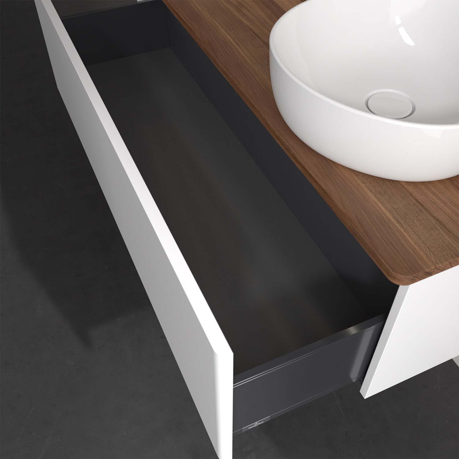 - kein Umfallen oder Verrutschen von Pflegeprodukten in den Schubladen dank rutschhemmendem Boden