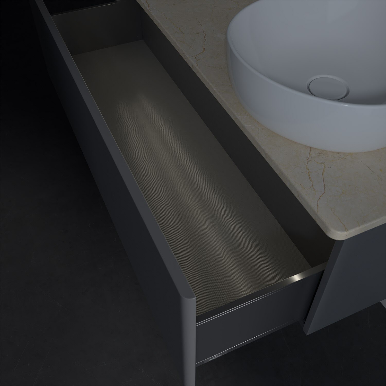 - kein Umfallen oder Verrutschen von Pflegeprodukten in den Schubladen dank rutschhemmendem Boden