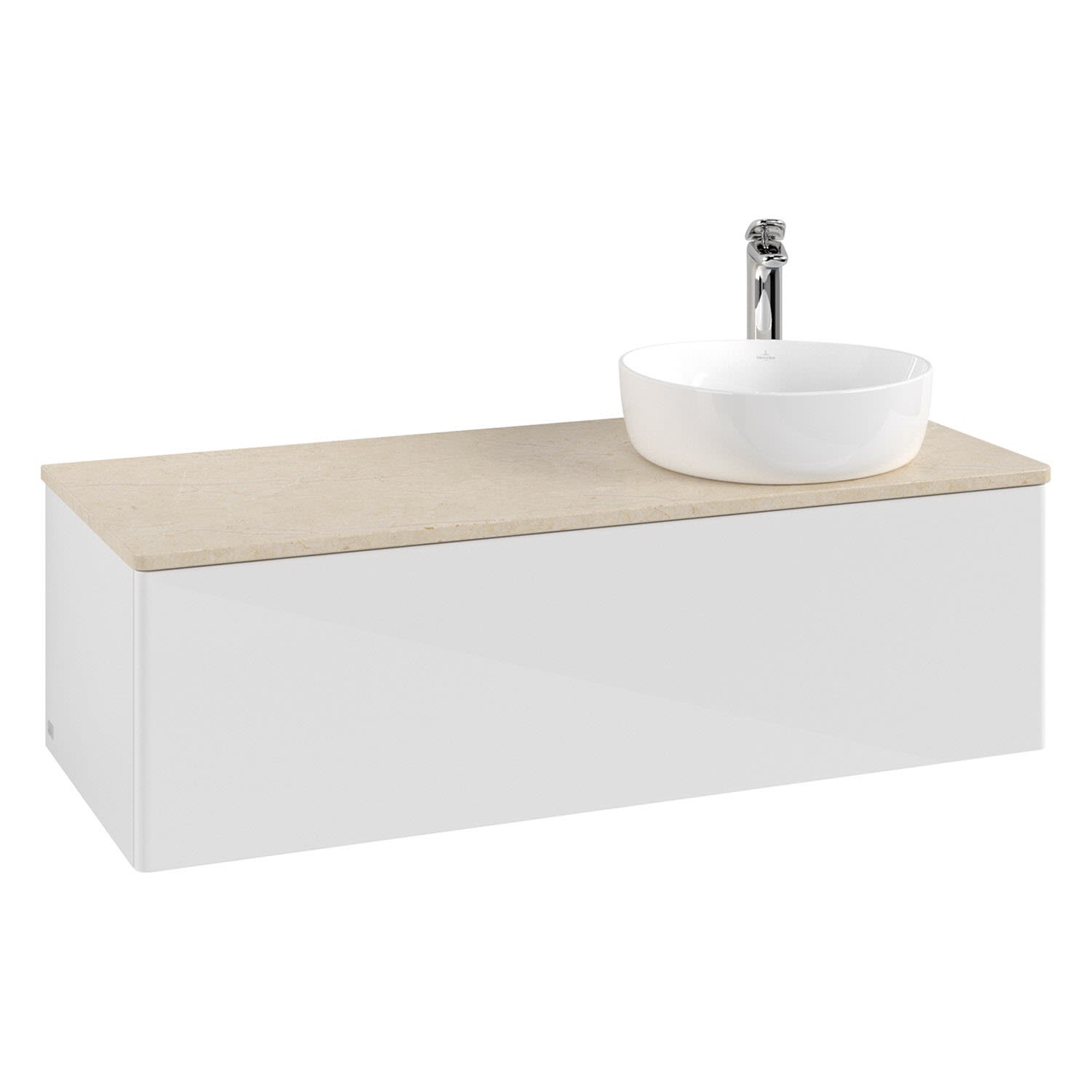 Villeroy & Boch Antao Waschbeckenunterschrank, 120 x 36 cm, 1 Auszug mit LED-Licht, Front ohne Struktur, mit Hahnloch, für Waschtisch rechts