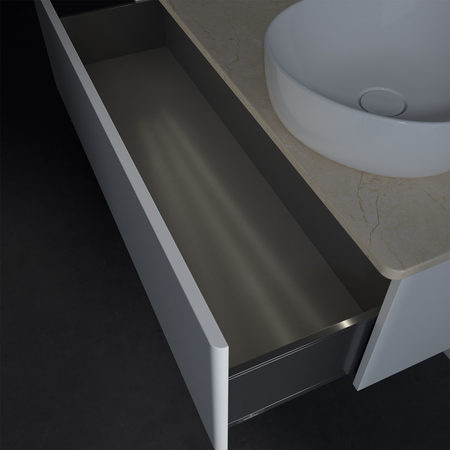 - kein Umfallen oder Verrutschen von Pflegeprodukten in den Schubladen dank rutschhemmendem Boden