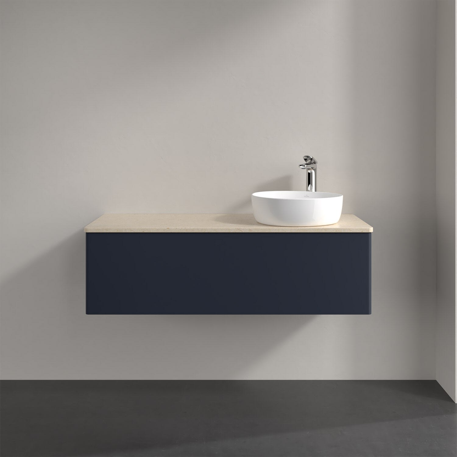 Für diesen Waschbeckenunterschrank stehen Ihnen Aufsatzwaschtische aus verschiedenen Serien zur Verfügung (siehe "Passliste" unter Downloads). Ein ausgewähltes Beispiel finden Sie im Zubehör. Den Waschtisch bitte separat mitbestellen.