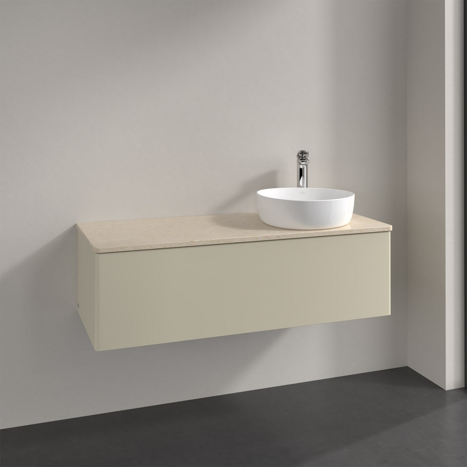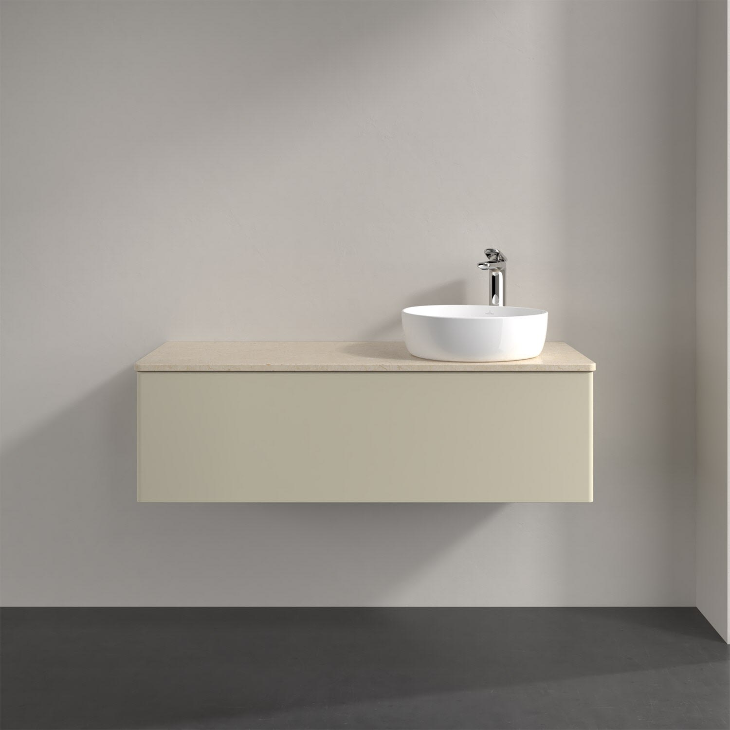 Für diesen Waschbeckenunterschrank stehen Ihnen Aufsatzwaschtische aus verschiedenen Serien zur Verfügung (siehe "Passliste" unter Downloads). Ein ausgewähltes Beispiel finden Sie im Zubehör. Den Waschtisch bitte separat mitbestellen.