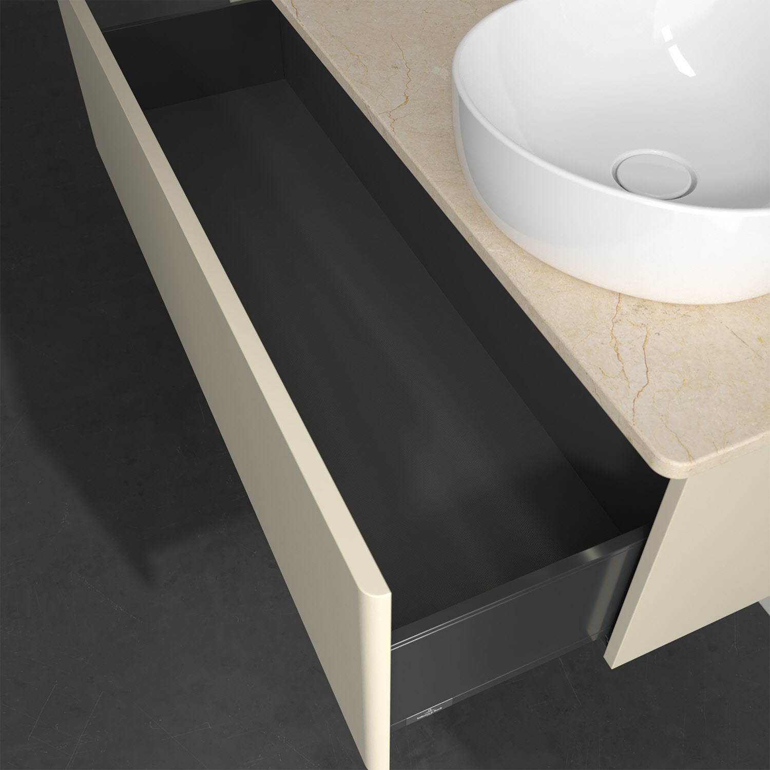- kein Umfallen oder Verrutschen von Pflegeprodukten in den Schubladen dank rutschhemmendem Boden