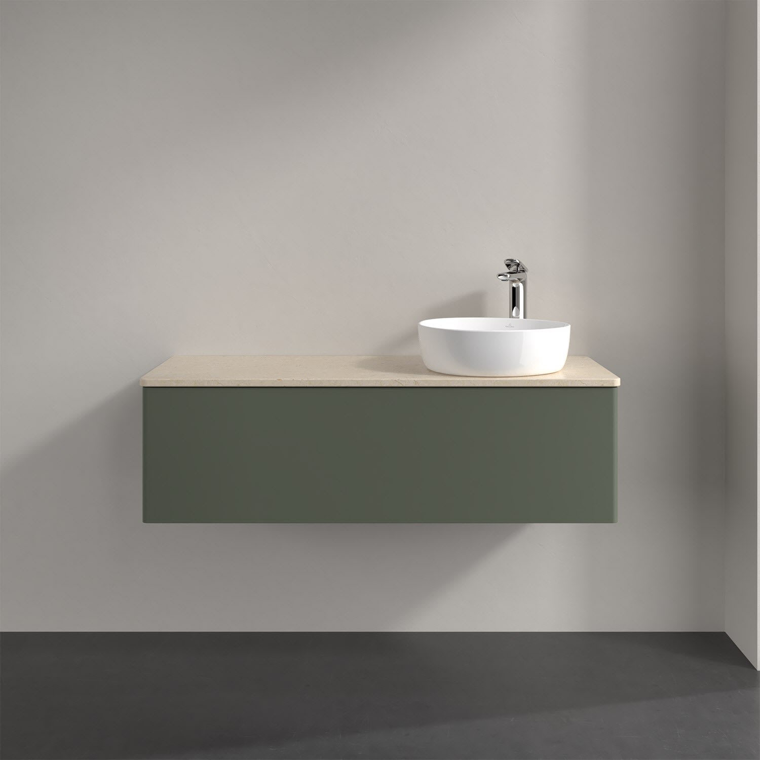 Villeroy & Boch Antao Waschbeckenunterschrank, 120 x 36 cm, 1 Auszug mit LED-Licht, Front ohne Struktur, mit Hahnloch, für Waschtisch rechts