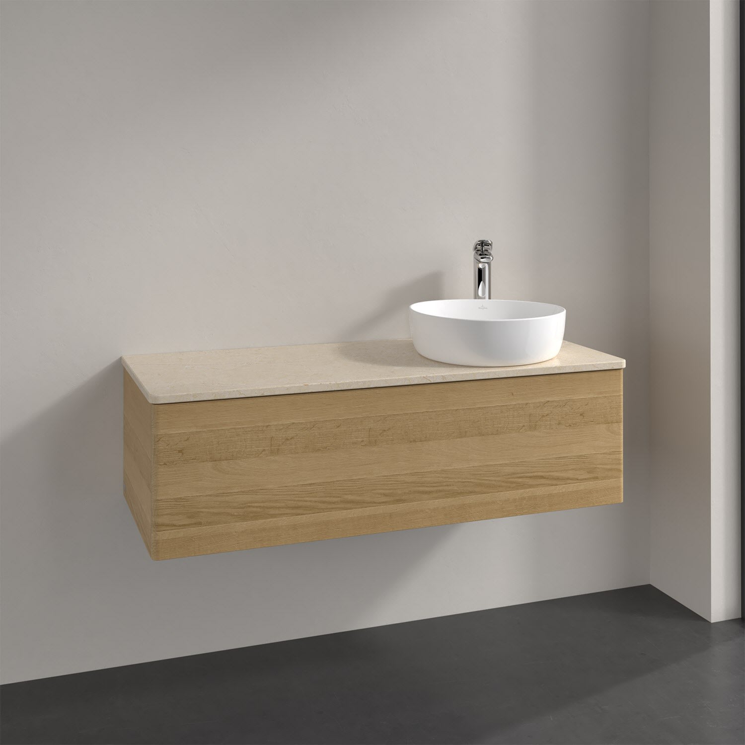 Für diesen Waschbeckenunterschrank stehen Ihnen Aufsatzwaschtische aus verschiedenen Serien zur Verfügung (siehe "Passliste" unter Downloads). Ein ausgewähltes Beispiel finden Sie im Zubehör. Den Waschtisch bitte separat mitbestellen.