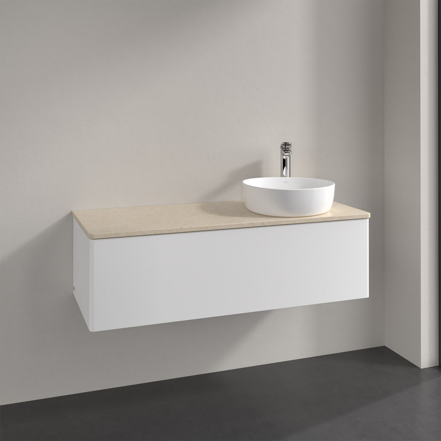 Villeroy & Boch Antao Waschbeckenunterschrank, 120 x 36 cm, 1 Auszug mit LED-Licht, Front ohne Struktur, mit Hahnloch, für Waschtisch rechts