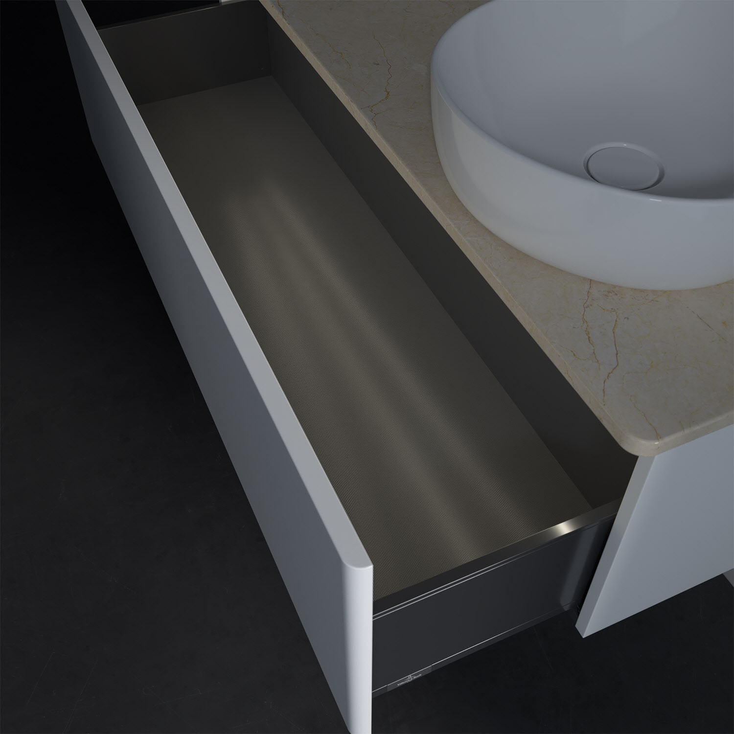 - kein Umfallen oder Verrutschen von Pflegeprodukten in den Schubladen dank rutschhemmendem Boden