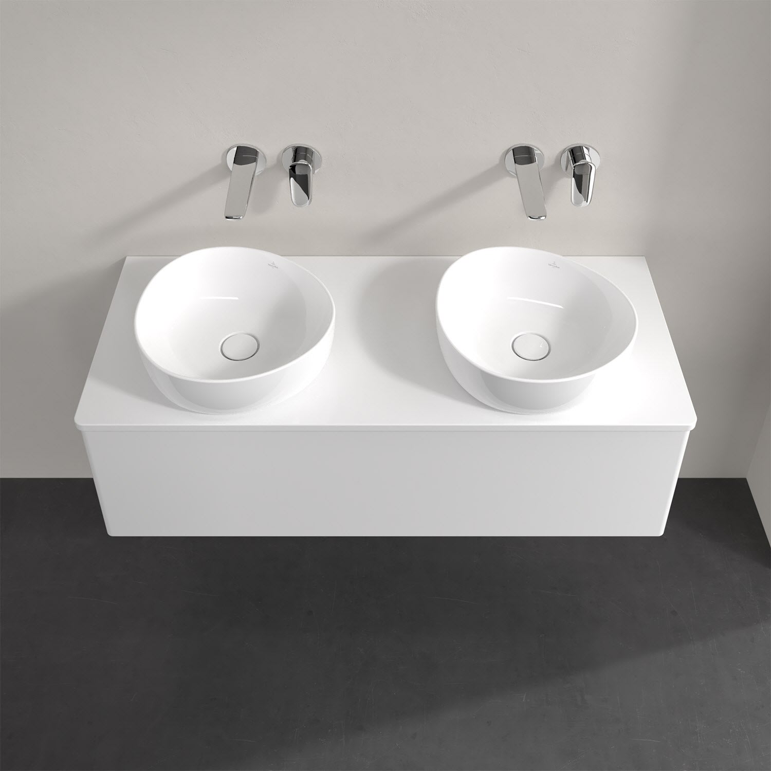 Für diesen Waschbeckenunterschrank stehen Ihnen Aufsatzwaschtische aus verschiedenen Serien zur Verfügung (siehe "Passliste" unter Downloads). Ein ausgewähltes Beispiel finden Sie im Zubehör. Den Waschtisch bitte separat mitbestellen.
