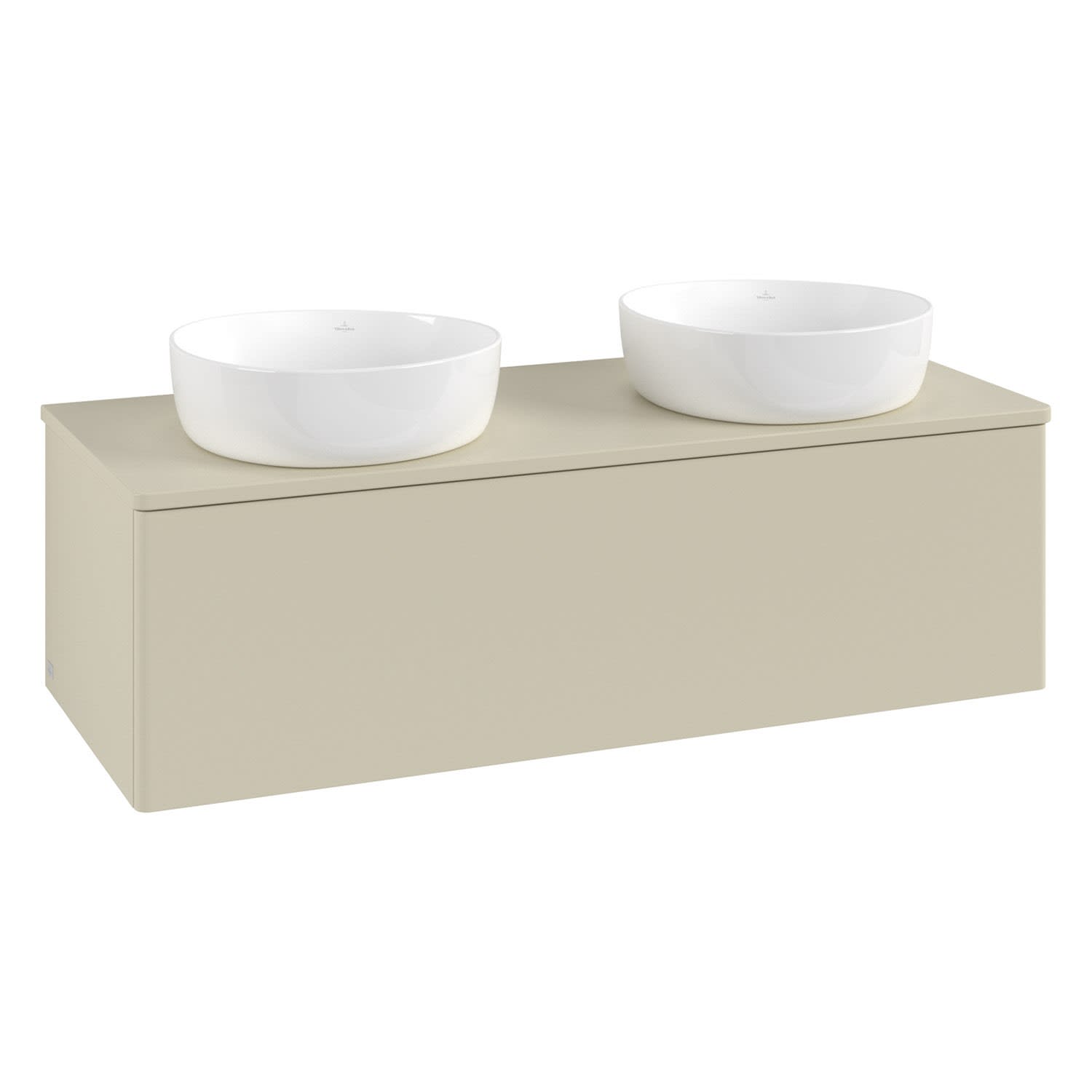 Villeroy & Boch Antao Waschbeckenunterschrank, 120 x 36 cm, 1 Auszug mit LED-Licht, Front ohne Struktur, mit Hahnloch, für Waschtisch links und rechts