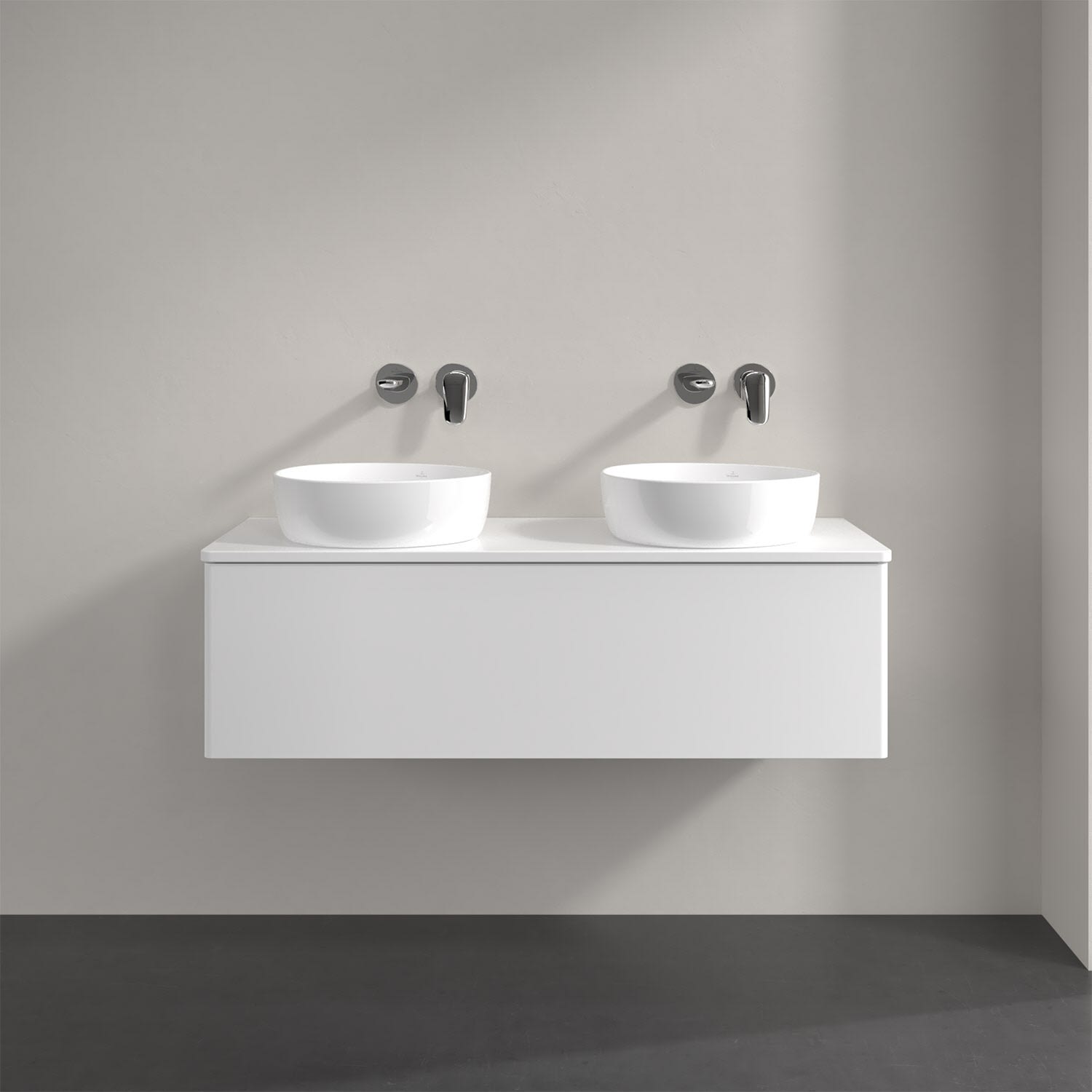 Der wandhängende Antao Waschtischunterschrank von Villeroy & Boch bietet nicht nur jede Menge Stauraum – er ist dank seines naturinspirierten Designs mit seinen abgerundeten Kanten auch noch besonders stilvoll und schafft eine gemütliche Atmosphäre im Badezimmer. Kombiniert mit zwei passenden Aufsatzwaschtischen also die ideale Wahl. Ein extra hoher Auszug bietet viel Platz, um alles Notwendige zu verstauen und Ordnung zu halten. Öffnen lässt er sich durch leichten Druck auf die grifflose Front. Dabei aktiviert sich übrigens die Auszugsbeleuchtung in angenehmem Warmweiß. Dank Vollauszug hat man immer alles im Blick und der Antirutschboden verhindert ein Umfallen oder Verrutschen der Gegenstände. Einfach clever! Für eine besonders leichte Pflege sorgt die mehrschichtig deckend lackierte Oberfläche.