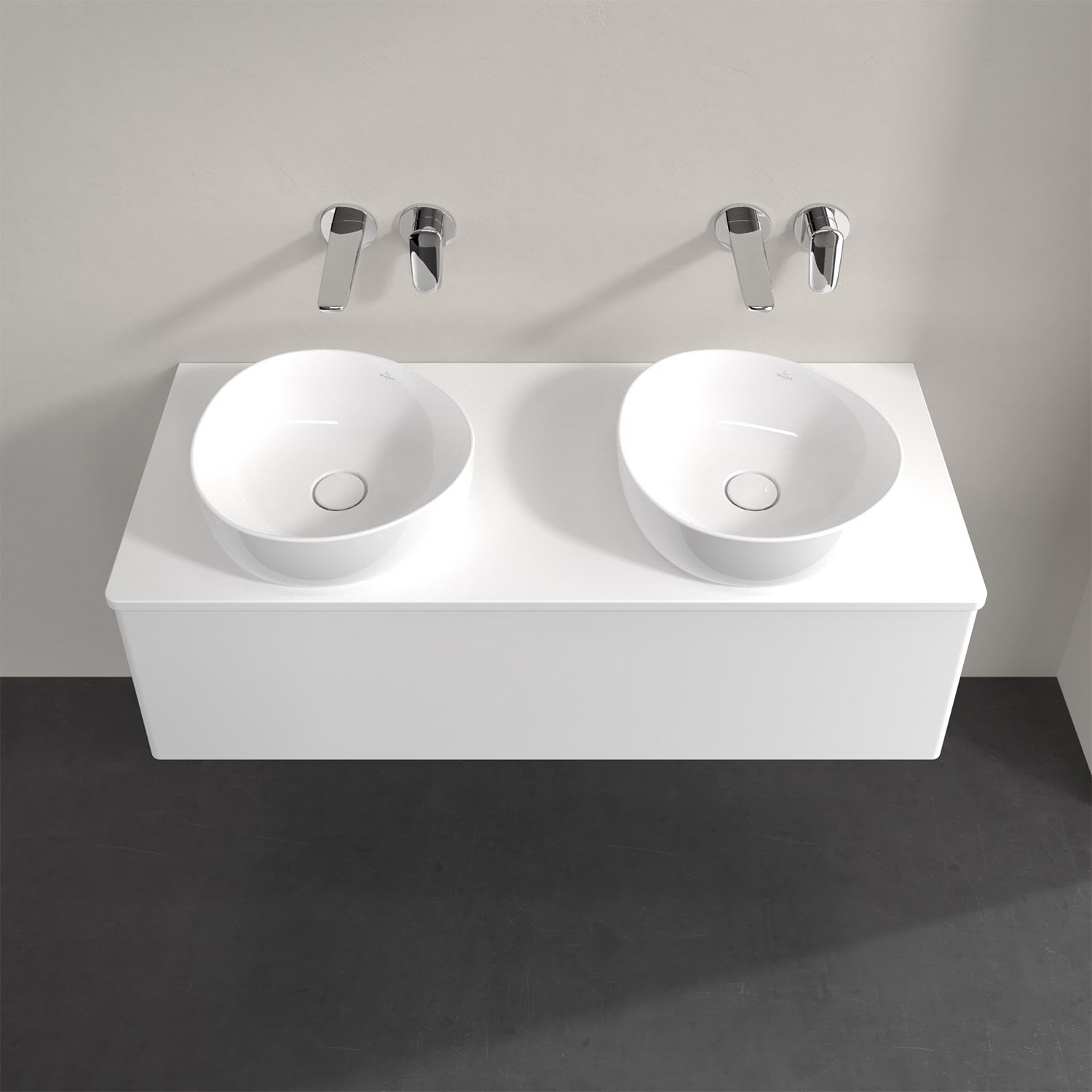 Für diesen Waschbeckenunterschrank stehen Ihnen Aufsatzwaschtische aus verschiedenen Serien zur Verfügung (siehe "Passliste" unter Downloads). Ein ausgewähltes Beispiel finden Sie im Zubehör. Den Waschtisch bitte separat mitbestellen.