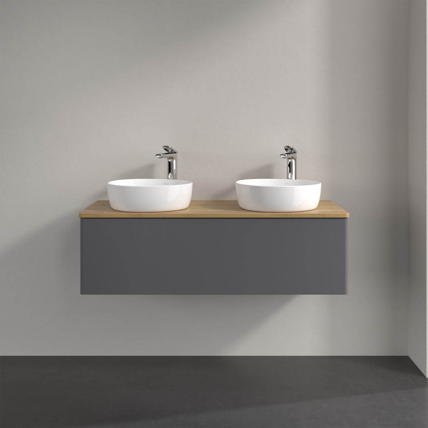 Der wandhängende Antao Waschtischunterschrank von Villeroy & Boch bietet nicht nur jede Menge Stauraum – er ist dank seines naturinspirierten Designs mit seinen abgerundeten Kanten auch noch besonders stilvoll und schafft eine gemütliche Atmosphäre im Badezimmer. Kombiniert mit zwei passenden Aufsatzwaschtischen also die ideale Wahl. Ein extra hoher Auszug bietet viel Platz, um alles Notwendige zu verstauen und Ordnung zu halten. Öffnen lässt er sich durch leichten Druck auf die grifflose Front. Dabei aktiviert sich übrigens die Auszugsbeleuchtung in angenehmem Warmweiß. Dank Vollauszug hat man immer alles im Blick und der Antirutschboden verhindert ein Umfallen oder Verrutschen der Gegenstände. Einfach clever! Für eine besonders leichte Pflege sorgt die mehrschichtig deckend lackierte Oberfläche. Bei der Ausführung in Massivholz wird dank des verarbeiteten Massivholzes jedes Möbel zu einem Unikat, das sich durch das lebendige Naturmaterial durch seine einzigartige Struktur und Maserung auszeichnet.