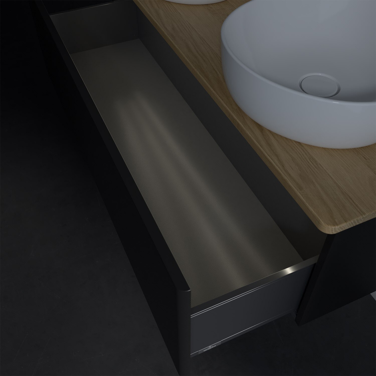 Der wandhängende Antao Waschtischunterschrank von Villeroy & Boch bietet nicht nur jede Menge Stauraum – er ist dank seines naturinspirierten Designs mit seinen abgerundeten Kanten auch noch besonders stilvoll und schafft eine gemütliche Atmosphäre im Badezimmer. Kombiniert mit zwei passenden Aufsatzwaschtischen also die ideale Wahl. Ein extra hoher Auszug bietet viel Platz, um alles Notwendige zu verstauen und Ordnung zu halten. Öffnen lässt er sich durch leichten Druck auf die grifflose Front. Dabei aktiviert sich übrigens die Auszugsbeleuchtung in angenehmem Warmweiß. Dank Vollauszug hat man immer alles im Blick und der Antirutschboden verhindert ein Umfallen oder Verrutschen der Gegenstände. Einfach clever! Für eine besonders leichte Pflege sorgt die mehrschichtig deckend lackierte Oberfläche. Bei der Ausführung in Massivholz wird dank des verarbeiteten Massivholzes jedes Möbel zu einem Unikat, das sich durch das lebendige Naturmaterial durch seine einzigartige Struktur und Maserung auszeichnet.