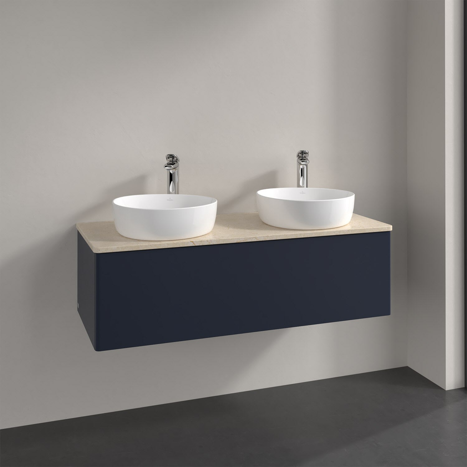 Villeroy & Boch Antao Waschbeckenunterschrank, 120 x 36 cm, 1 Auszug mit LED-Licht, Front ohne Struktur, mit Hahnloch, für Waschtisch links und rechts