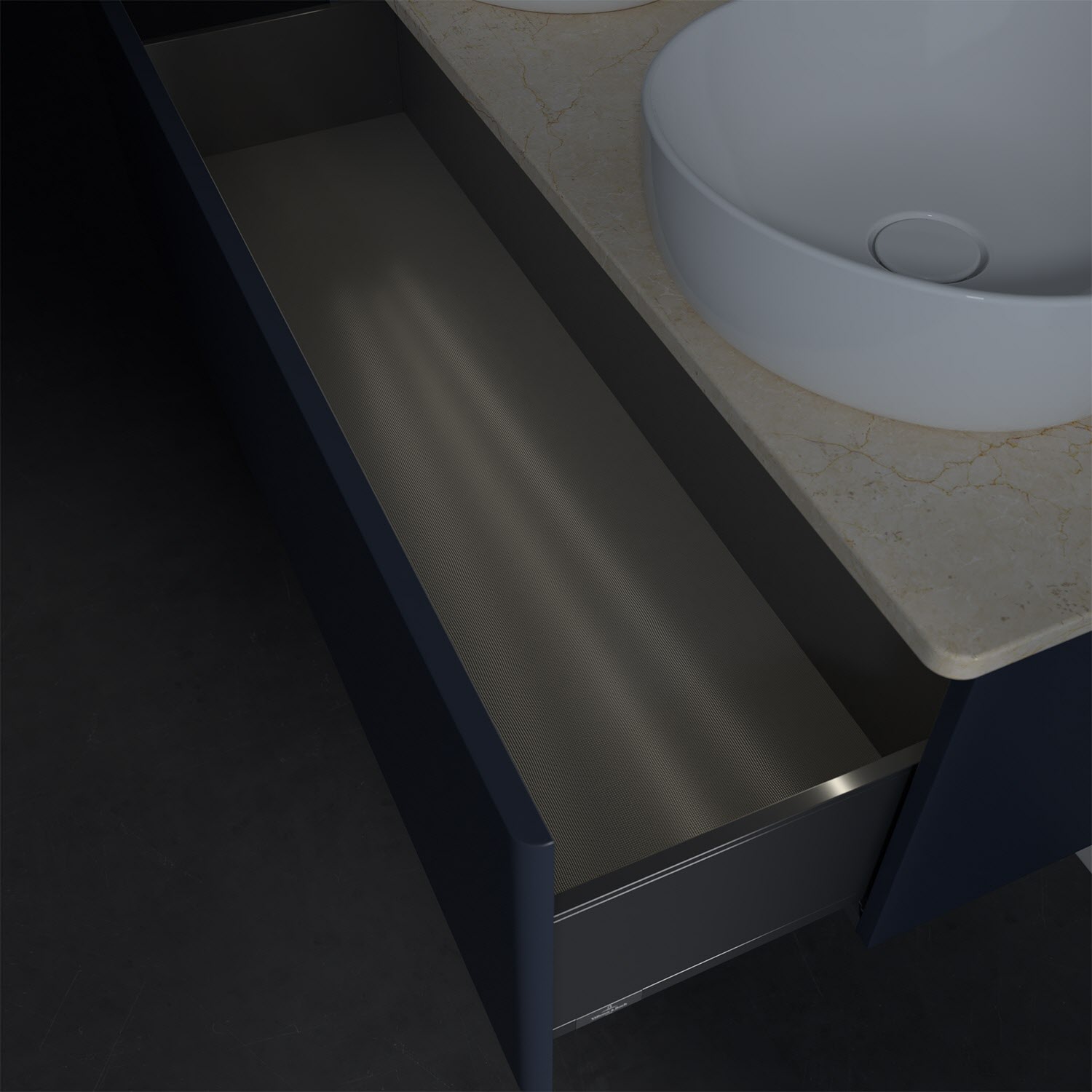 - kein Umfallen oder Verrutschen von Pflegeprodukten in den Schubladen dank rutschhemmendem Boden