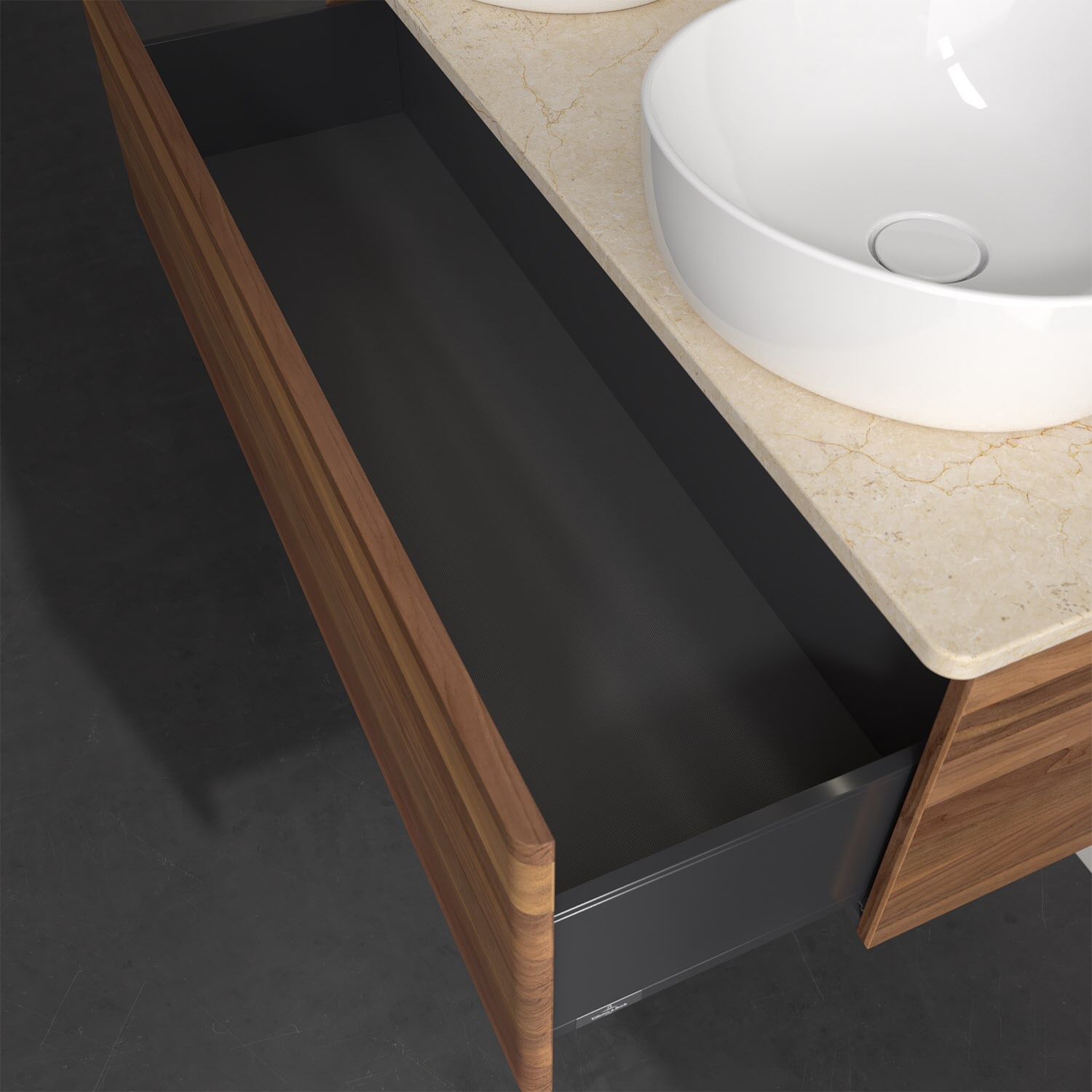 - kein Umfallen oder Verrutschen von Pflegeprodukten in den Schubladen dank rutschhemmendem Boden
