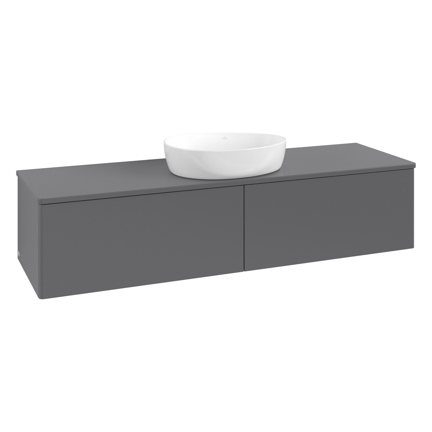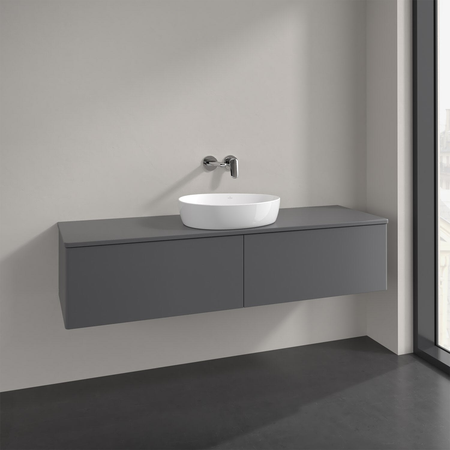 Villeroy & Boch Antao Waschbeckenunterschrank, 160 x 36 cm, 2 Auszüge mit LED-Licht, Front ohne Struktur, mit Hahnloch, für Waschtisch mittig