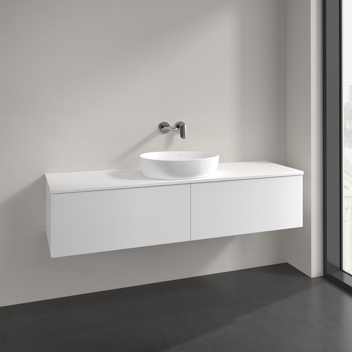 Villeroy & Boch Antao Waschbeckenunterschrank, 160 x 36 cm, 2 Auszüge mit LED-Licht, Front ohne Struktur, mit Hahnloch, für Waschtisch mittig
