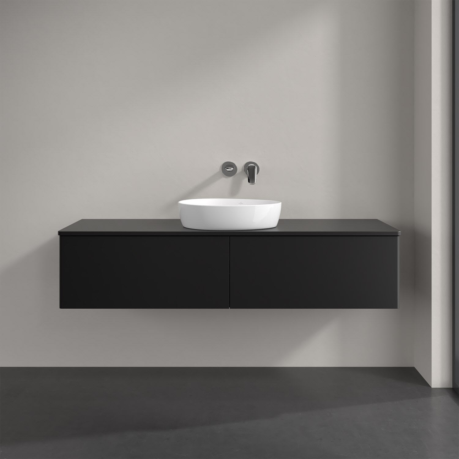 Villeroy & Boch Antao Waschbeckenunterschrank, 160 x 36 cm, 2 Auszüge mit LED-Licht, Front ohne Struktur, mit Hahnloch, für Waschtisch mittig