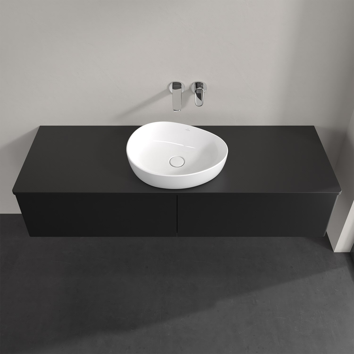 Für diesen Waschbeckenunterschrank stehen Ihnen Aufsatzwaschtische aus verschiedenen Serien zur Verfügung (siehe "Passliste" unter Downloads). Ein ausgewähltes Beispiel finden Sie im Zubehör. Den Waschtisch bitte separat mitbestellen.