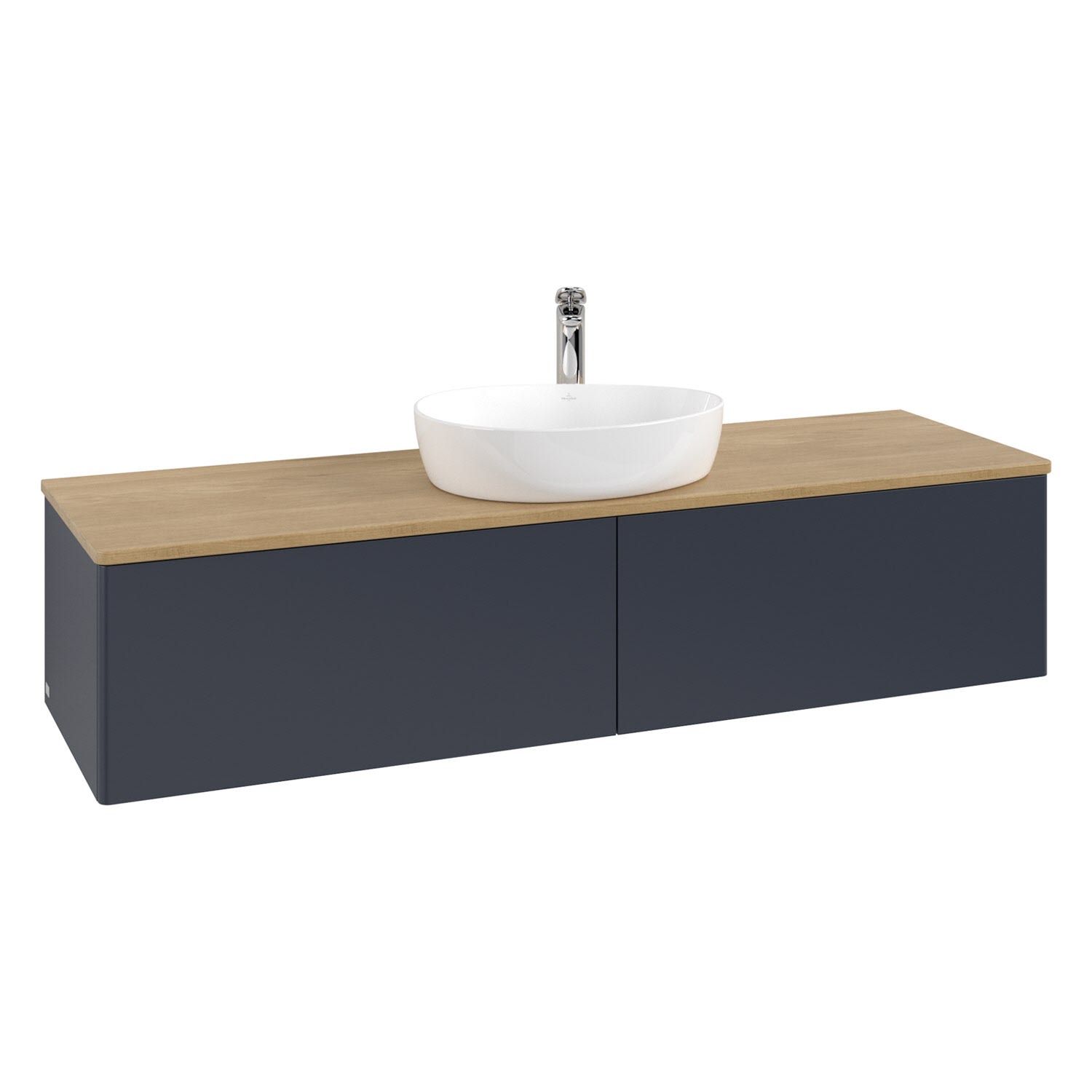 Villeroy & Boch Antao Waschbeckenunterschrank, 160 x 36 cm, 2 Auszüge mit LED-Licht, Front ohne Struktur, mit Hahnloch, für Waschtisch mittig