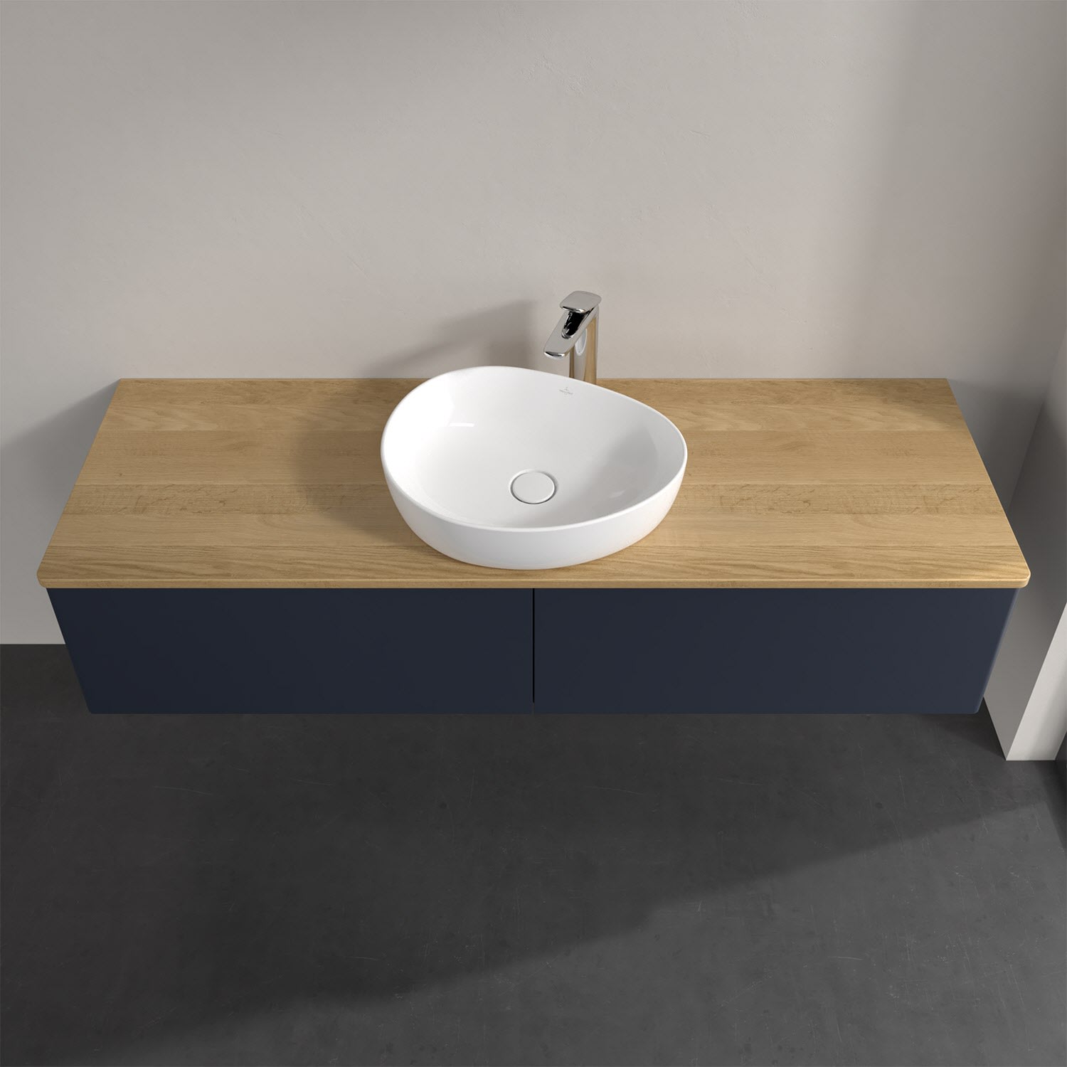 Für diesen Waschbeckenunterschrank stehen Ihnen Aufsatzwaschtische aus verschiedenen Serien zur Verfügung (siehe "Passliste" unter Downloads). Ein ausgewähltes Beispiel finden Sie im Zubehör. Den Waschtisch bitte separat mitbestellen.