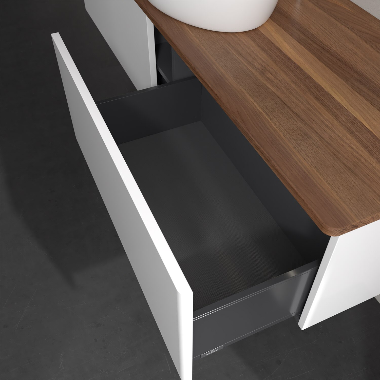 - kein Umfallen oder Verrutschen von Pflegeprodukten in den Schubladen dank rutschhemmendem Boden