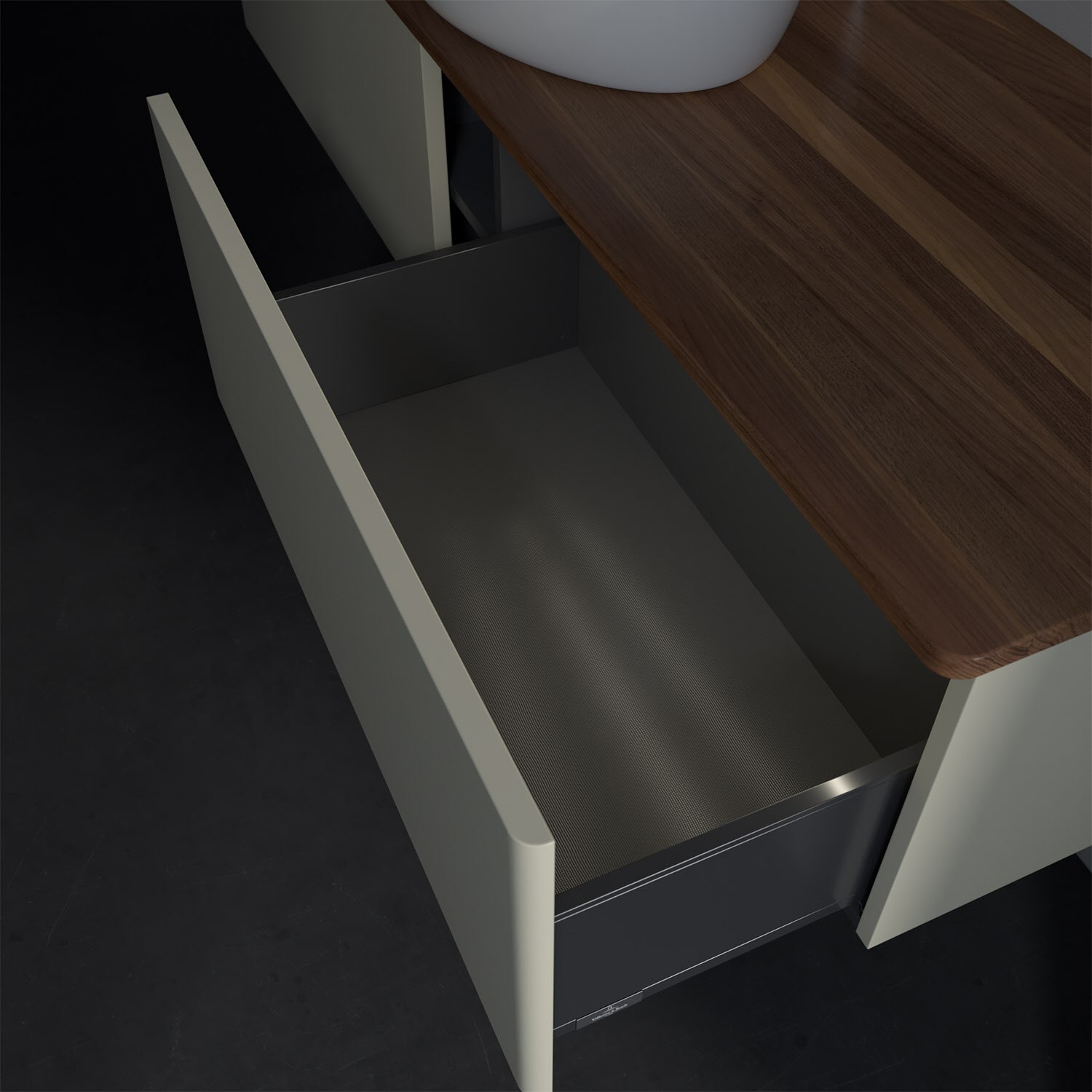 - kein Umfallen oder Verrutschen von Pflegeprodukten in den Schubladen dank rutschhemmendem Boden