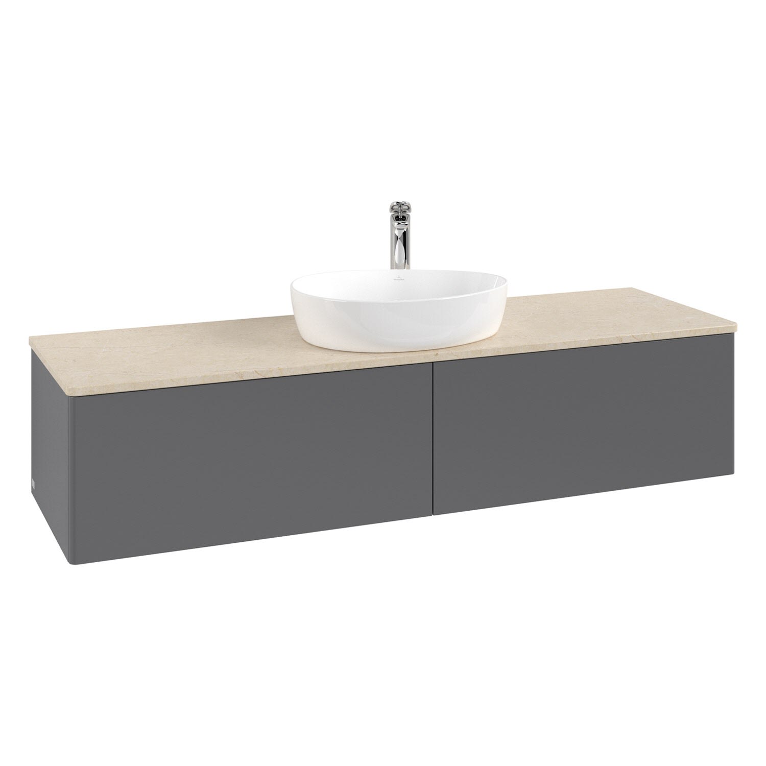 Villeroy & Boch Antao Waschbeckenunterschrank, 160 x 36 cm, 2 Auszüge mit LED-Licht, Front ohne Struktur, mit Hahnloch, für Waschtisch mittig