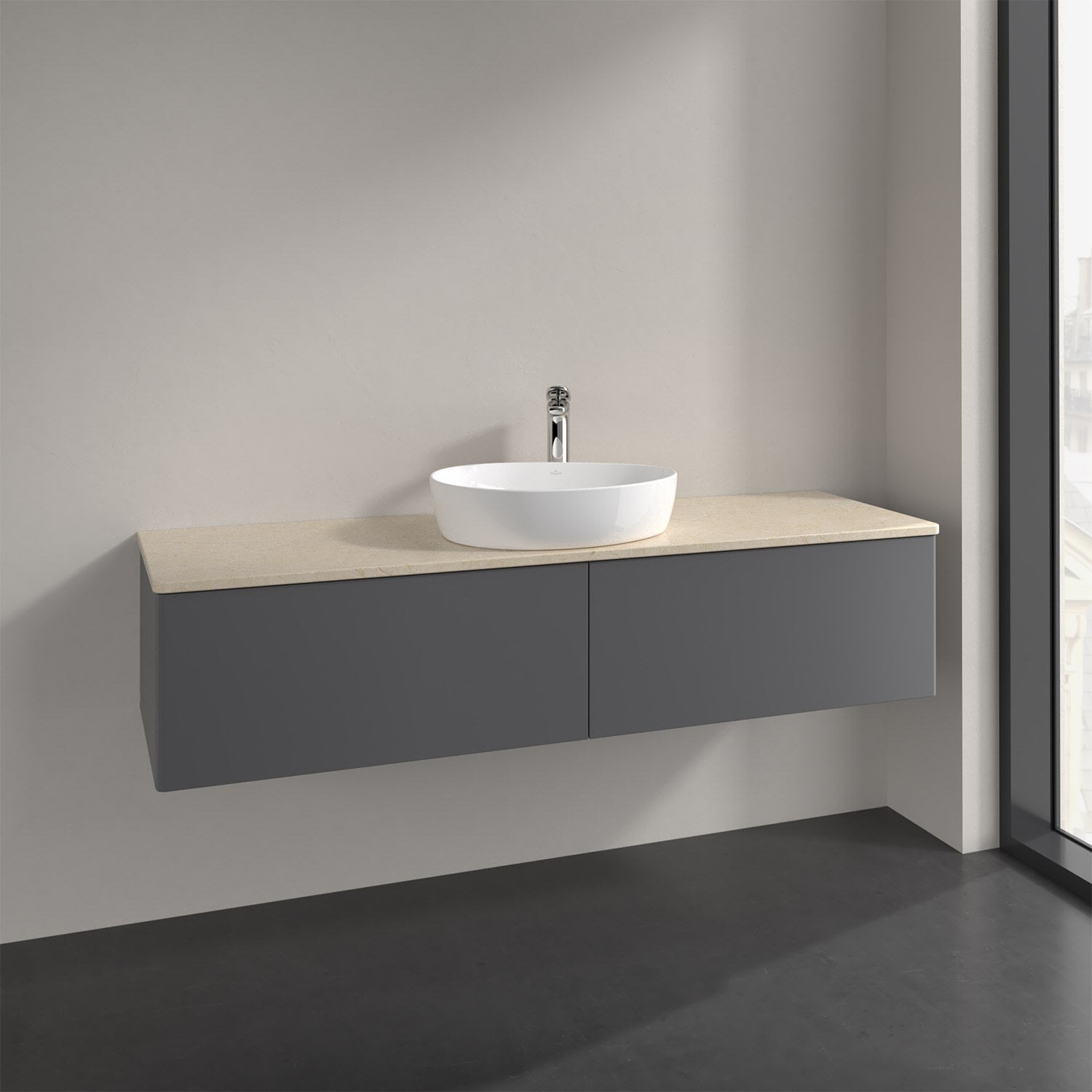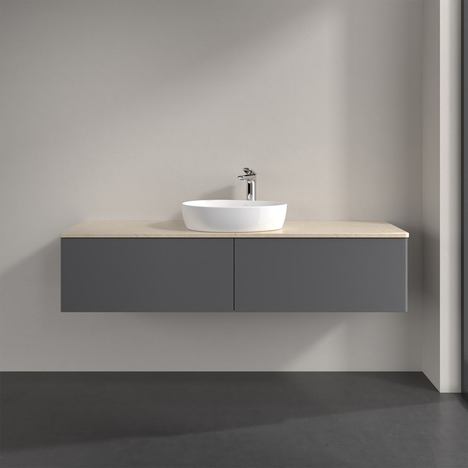 Für diesen Waschbeckenunterschrank stehen Ihnen Aufsatzwaschtische aus verschiedenen Serien zur Verfügung (siehe "Passliste" unter Downloads). Ein ausgewähltes Beispiel finden Sie im Zubehör. Den Waschtisch bitte separat mitbestellen.