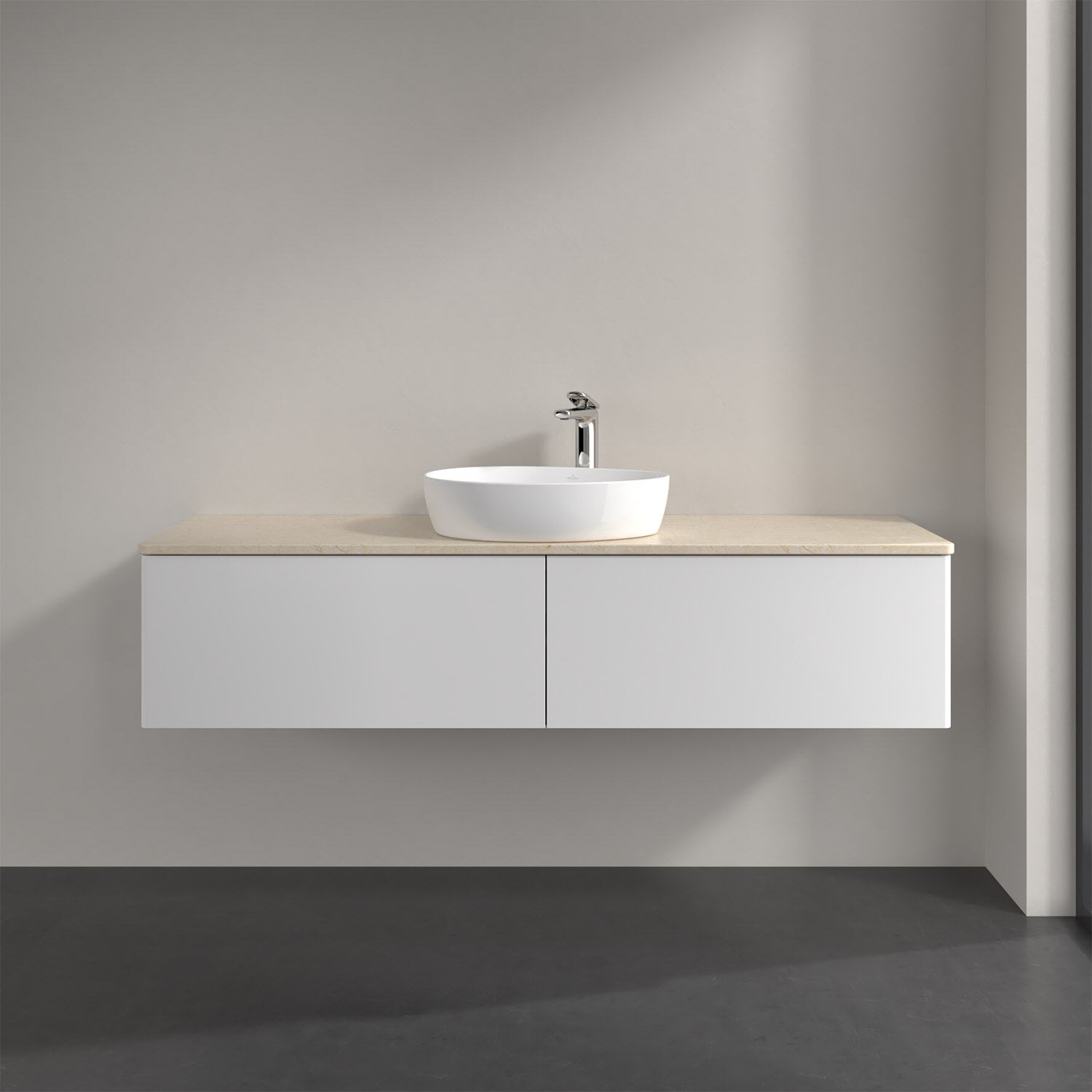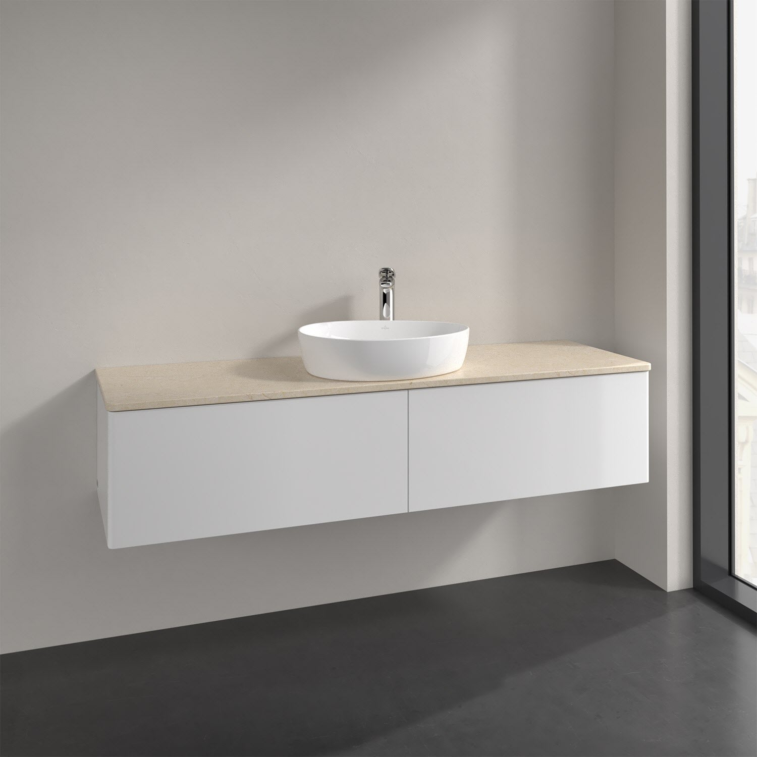 Villeroy & Boch Antao Waschbeckenunterschrank, 160 x 36 cm, 2 Auszüge mit LED-Licht, Front ohne Struktur, mit Hahnloch, für Waschtisch mittig