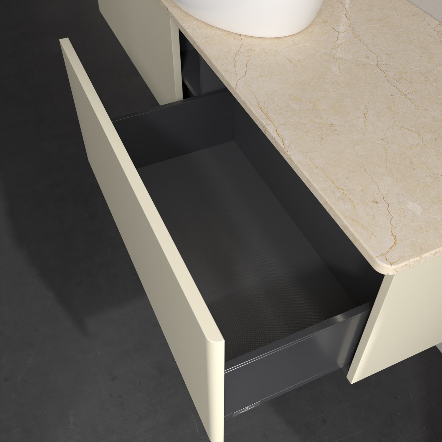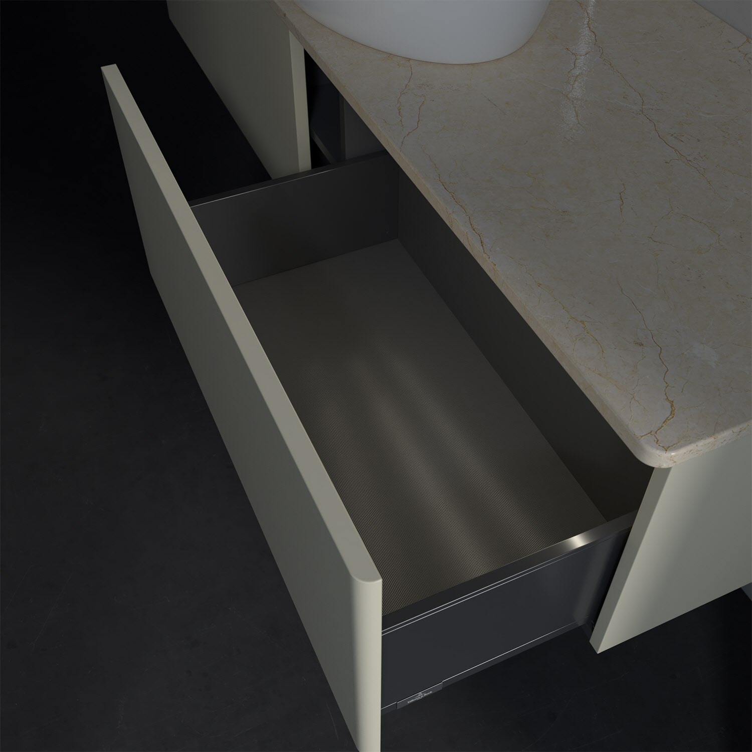 - kein Umfallen oder Verrutschen von Pflegeprodukten in den Schubladen dank rutschhemmendem Boden