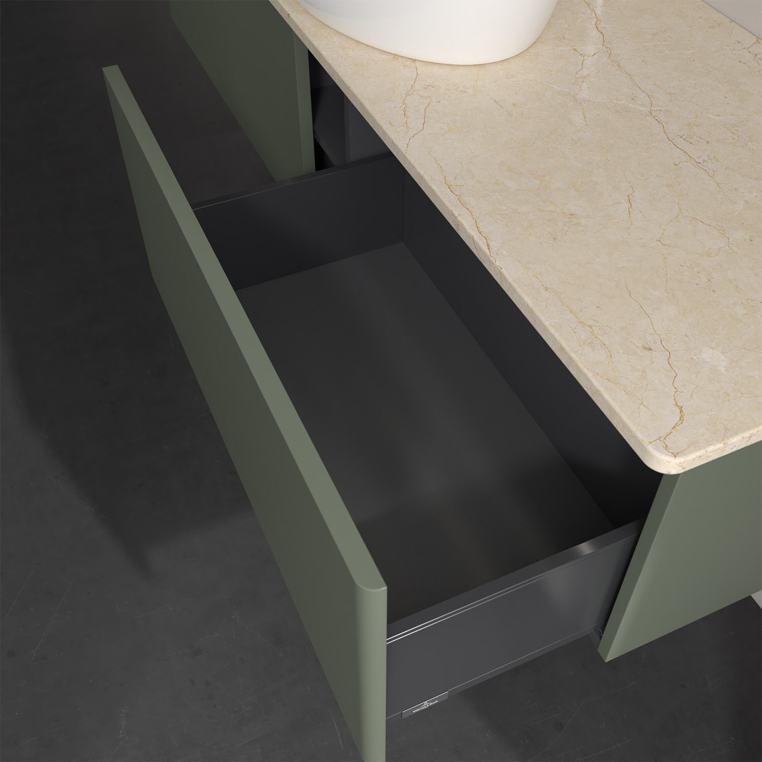 - kein Umfallen oder Verrutschen von Pflegeprodukten in den Schubladen dank rutschhemmendem Boden
