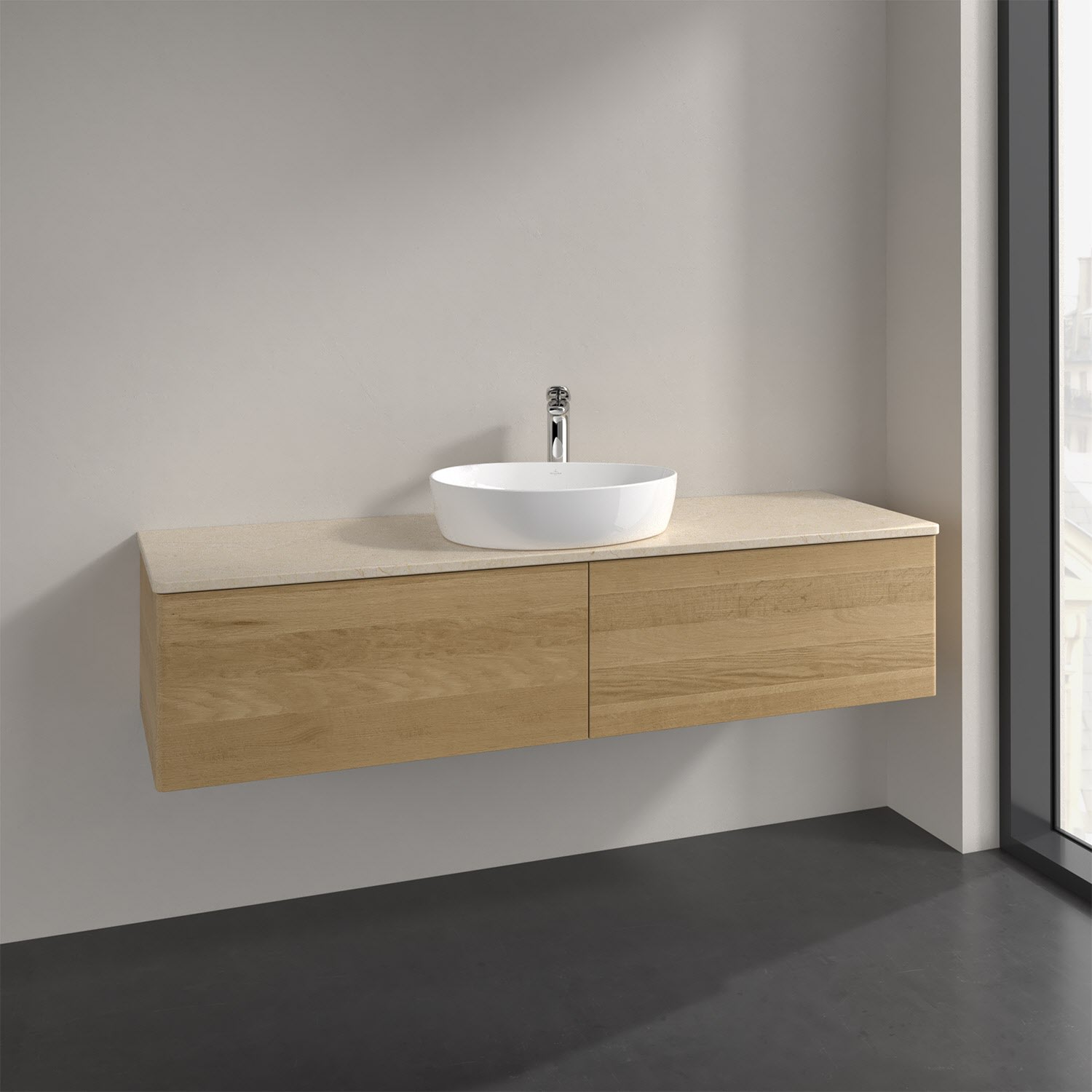 Der wandhängende Antao Waschtischunterschrank bietet mit seinen beiden extra hohen Auszügen und seiner erstaunlichen Größe viel Platz zum Verstauen von Utensilien im Badezimmer. Dank des mittig platzierten Aufsatzwaschtischs gibt es seitlich weiteren Platz für Handtücher, Seifenspender & Co. auf der Waschtischplatte. Inspiriert von der Natur überzeugt der Unterschrank auch optisch mit sanfter Formsprache und abgerundete Kanten. Die grifflosen Auszüge sind mit der Push-to-Open Funktion ausgestattet und verfügen über einen Antirutschboden, damit Utensilien sicher verstaut werden können. Den Überblick behält man dank der warmweißen Auszugsbeleuchtung, die sich automatisch beim Öffnen einschaltet. Mit seiner Vollauszug- und Selbsteinzug-Funktion ist der Schrank praktisch und leicht zu bedienen. Qualität von Villeroy & Boch! Für eine besonders leichte Pflege sorgt die mehrschichtig deckend lackierte Oberfläche. Bei der Ausführung in Massivholz wird dank des verarbeiteten Massivholzes jedes Möbel zu einem Unikat, das sich durch das lebendige Naturmaterial durch seine einzigartige Struktur und Maserung auszeichnet.