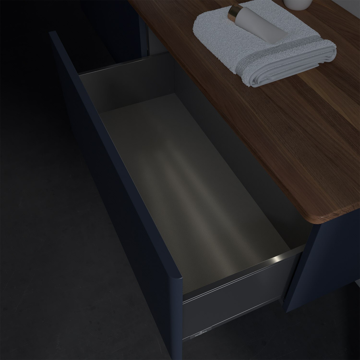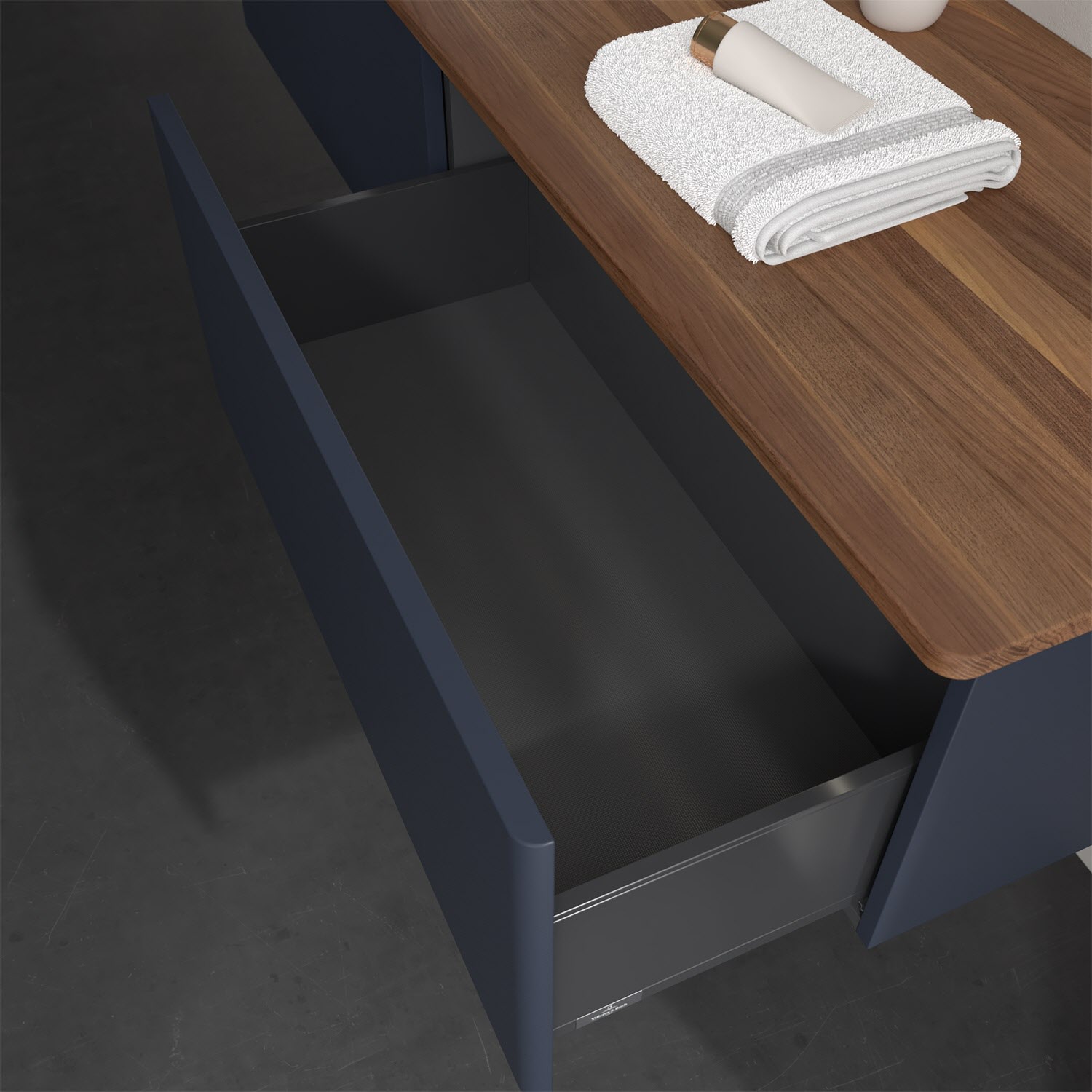 - kein Umfallen oder Verrutschen von Pflegeprodukten in den Schubladen dank rutschhemmendem Boden