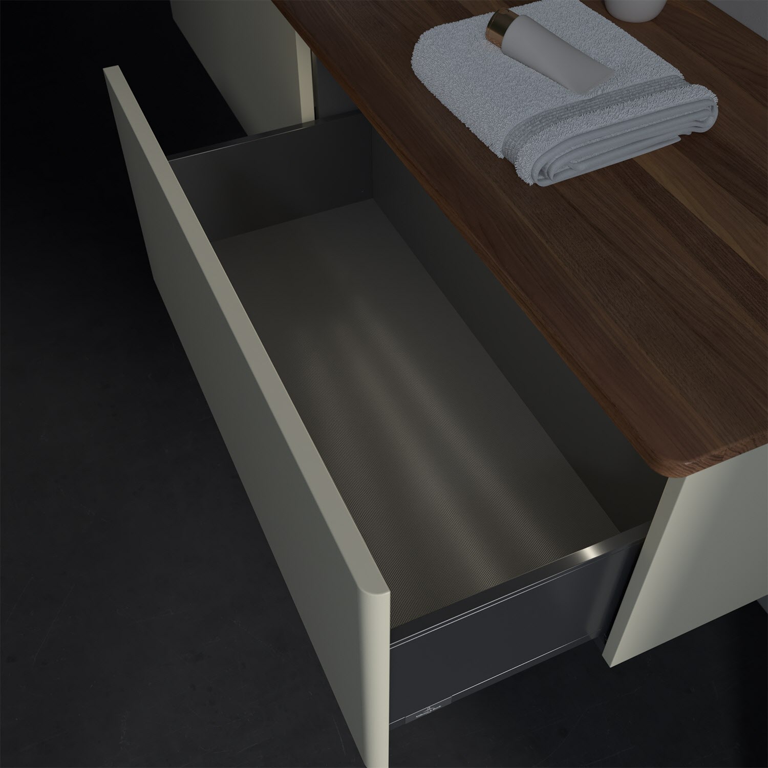 - kein Umfallen oder Verrutschen von Pflegeprodukten in den Schubladen dank rutschhemmendem Boden