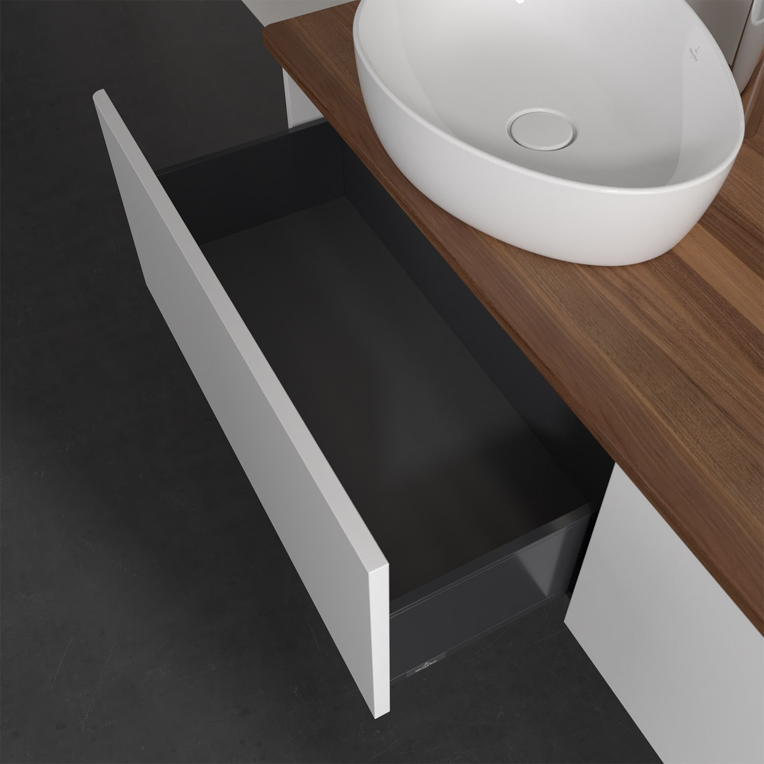 Der wandhängende Antao Waschtischunterschrank bietet mit seinen beiden extra hohen Auszügen und seiner erstaunlichen Größe viel Platz zum Verstauen von Utensilien im Badezimmer. Dank des seitlich platzierten Aufsatzwaschtischs gibt es daneben weiteren Platz für Handtücher, Seifenspender & Co. auf der Waschtischplatte. Inspiriert von der Natur überzeugt der Unterschrank auch optisch mit sanfter Formsprache und abgerundete Kanten. Die grifflosen Auszüge sind mit der Push-to-Open Funktion ausgestattet und verfügen über einen Antirutschboden, damit Utensilien sicher verstaut werden können. Den Überblick behält man dank der warmweißen Auszugsbeleuchtung, die sich automatisch beim Öffnen einschaltet. Mit seiner Vollauszug- und Selbsteinzug-Funktion ist der Schrank praktisch und leicht zu bedienen. Qualität von Villeroy & Boch! Für eine besonders leichte Pflege sorgt die mehrschichtig deckend lackierte Oberfläche. Bei der Ausführung in Massivholz wird dank des verarbeiteten Massivholzes jedes Möbel zu einem Unikat, das sich durch das lebendige Naturmaterial durch seine einzigartige Struktur und Maserung auszeichnet.