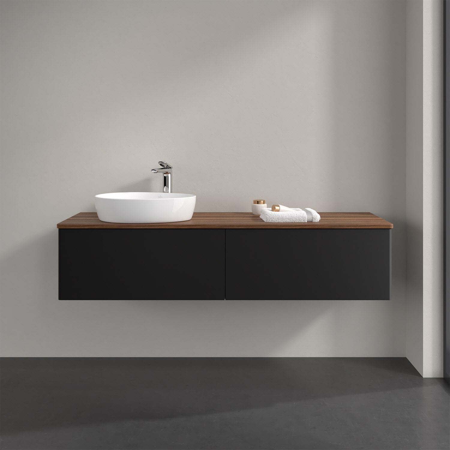 Villeroy & Boch Antao Waschbeckenunterschrank, 160 x 36 cm, 2 Auszüge mit LED-Licht, Front ohne Struktur, mit Hahnloch, für Waschtisch links