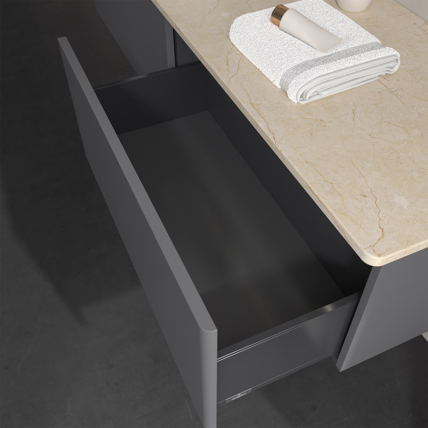 Villeroy & Boch Antao Waschbeckenunterschrank, 160 x 36 cm, 2 Auszüge mit LED-Licht, Front ohne Struktur, mit Hahnloch, für Waschtisch links