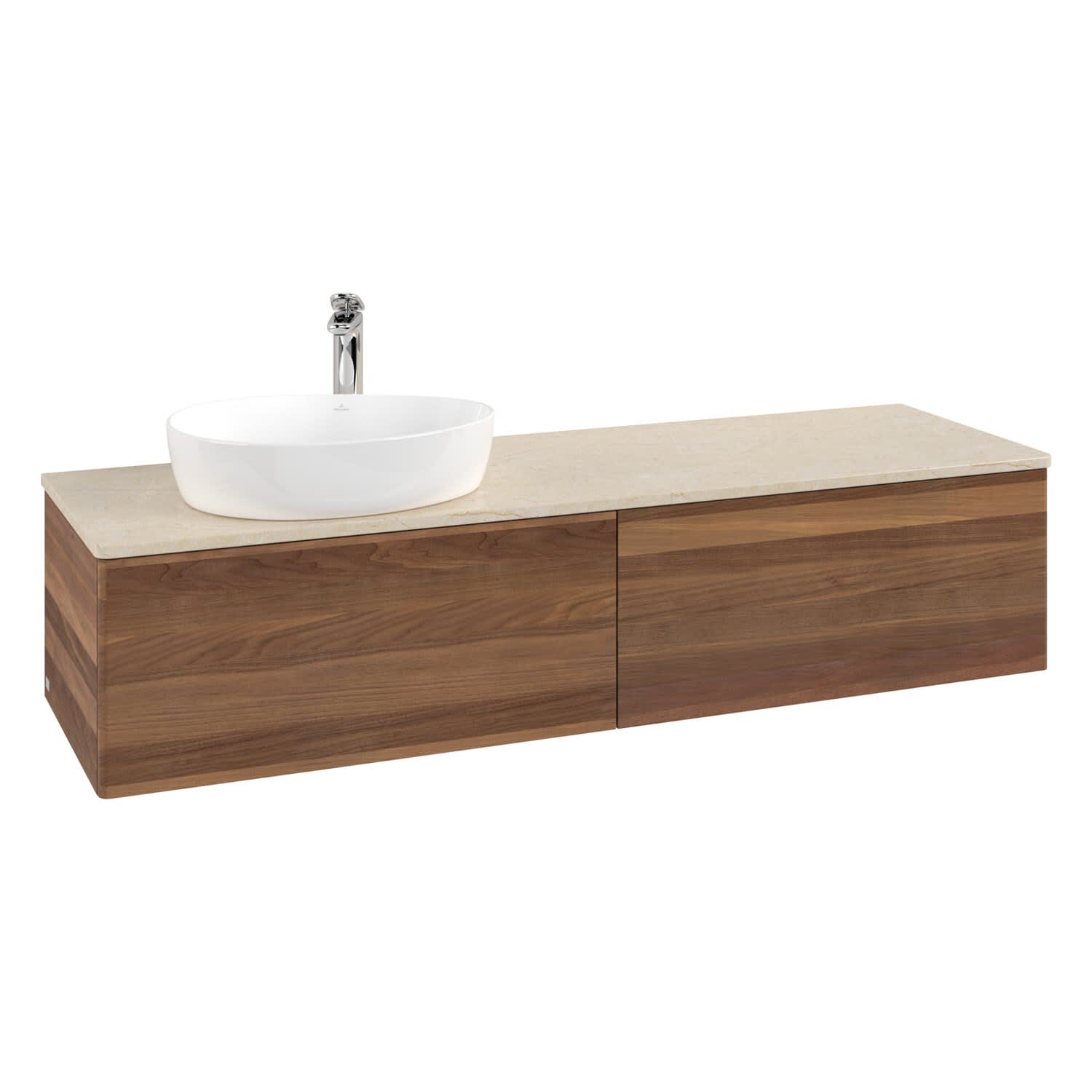 Villeroy & Boch Antao Waschbeckenunterschrank, 160 x 36 cm, 2 Auszüge mit LED-Licht, Front ohne Struktur, mit Hahnloch, für Waschtisch links