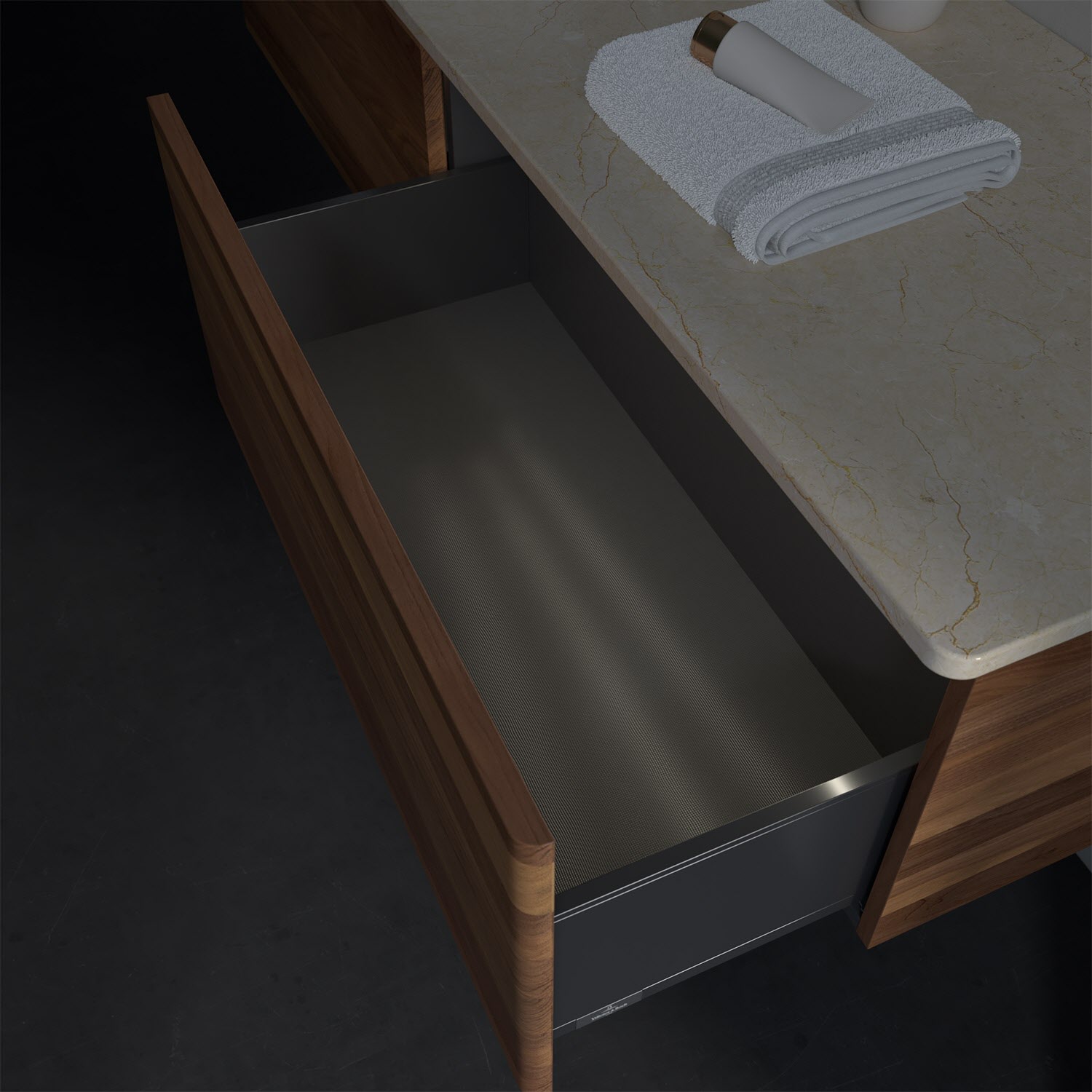 - kein Umfallen oder Verrutschen von Pflegeprodukten in den Schubladen dank rutschhemmendem Boden