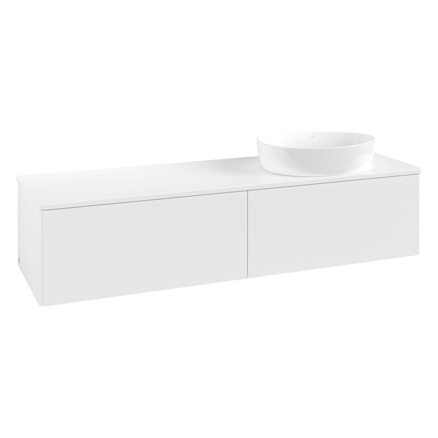 Villeroy & Boch Antao Waschbeckenunterschrank, 160 x 36 cm, 2 Auszüge mit LED-Licht, Front ohne Struktur, mit Hahnloch, für Waschtisch rechts