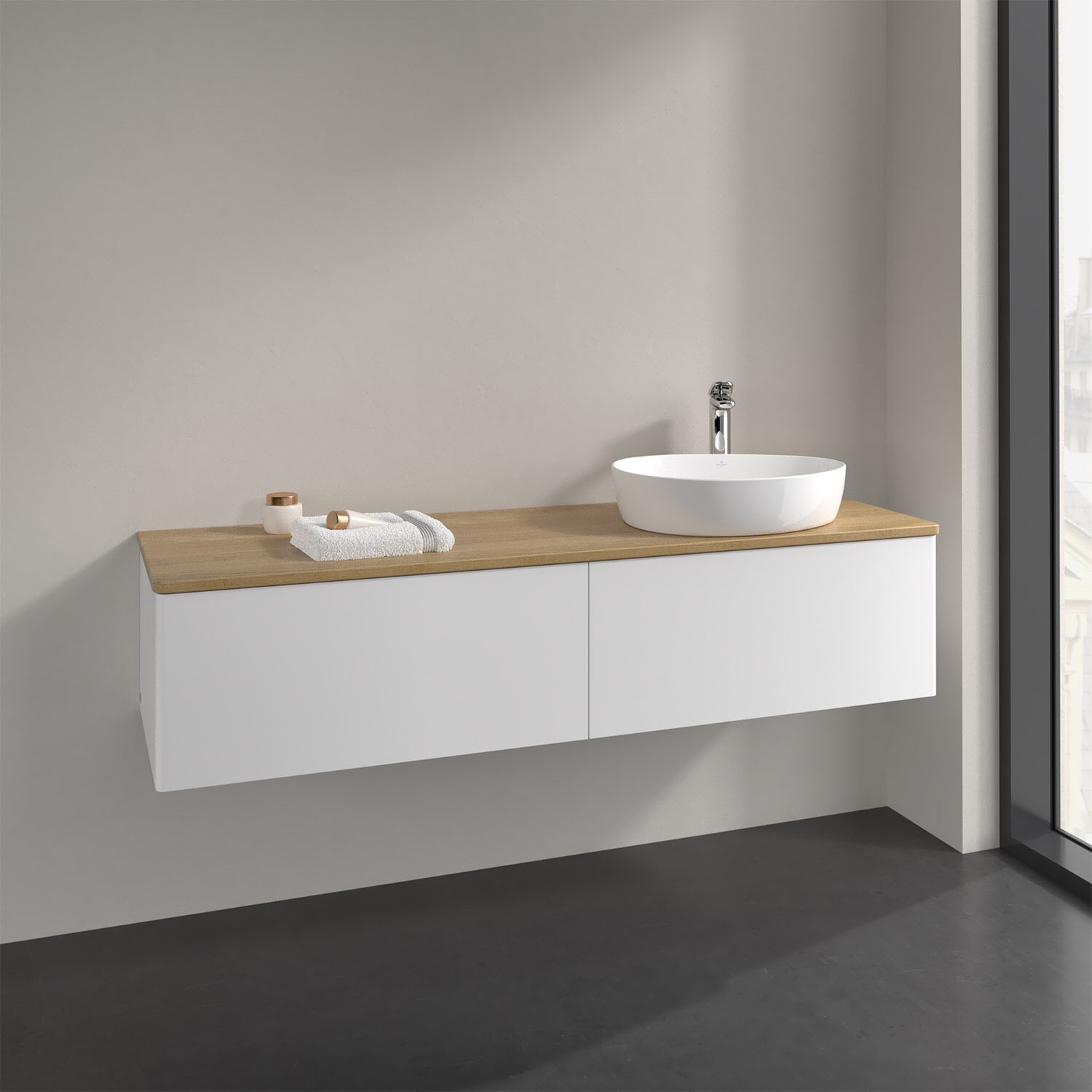 Villeroy & Boch Antao Waschbeckenunterschrank, 160 x 36 cm, 2 Auszüge mit LED-Licht, Front ohne Struktur, mit Hahnloch, für Waschtisch rechts