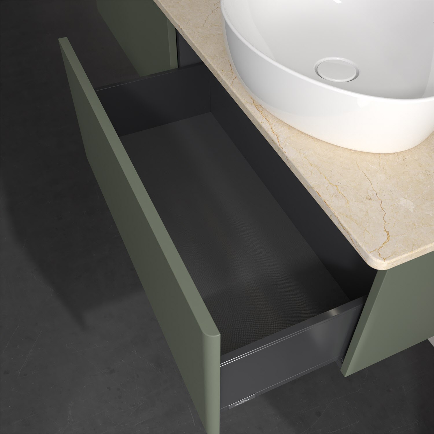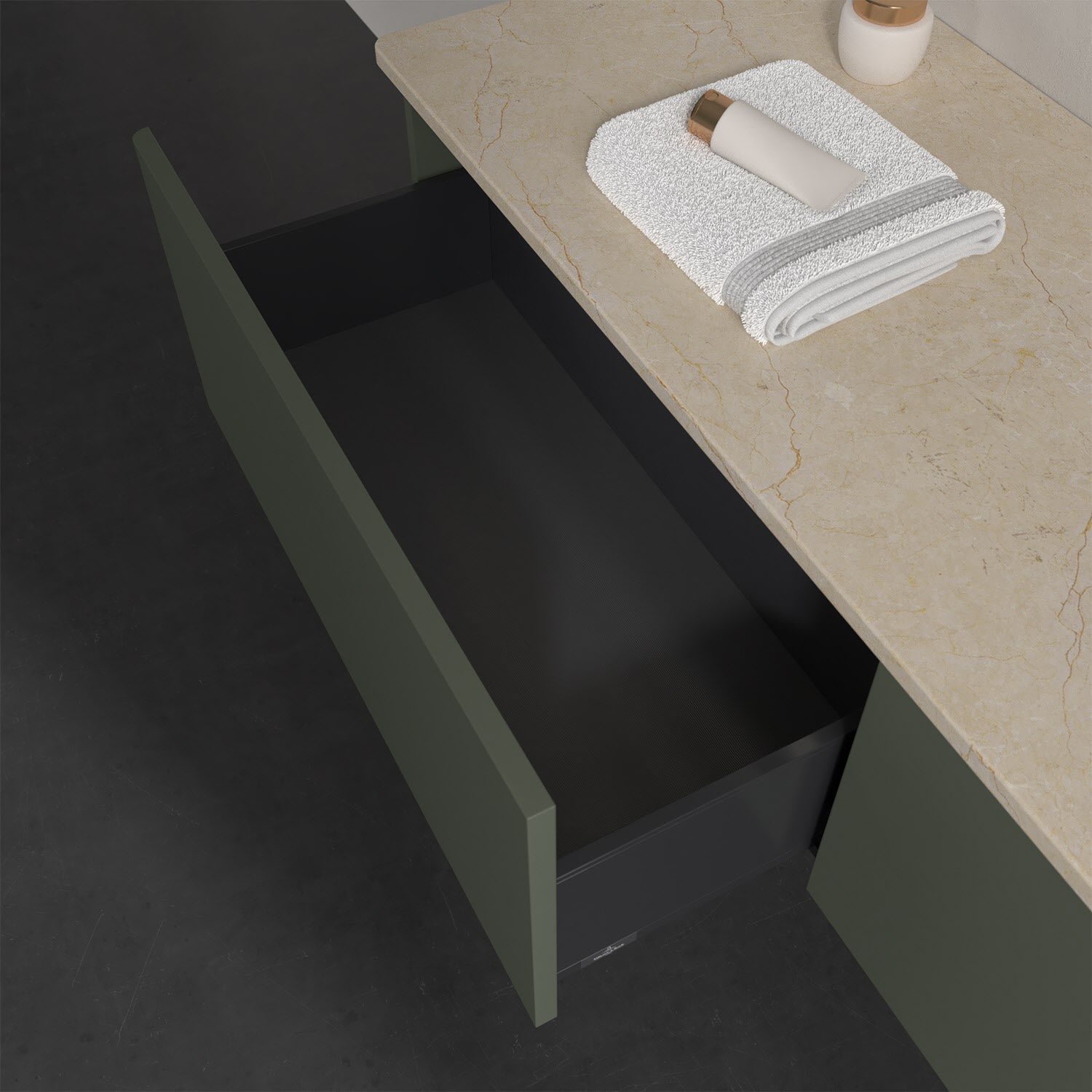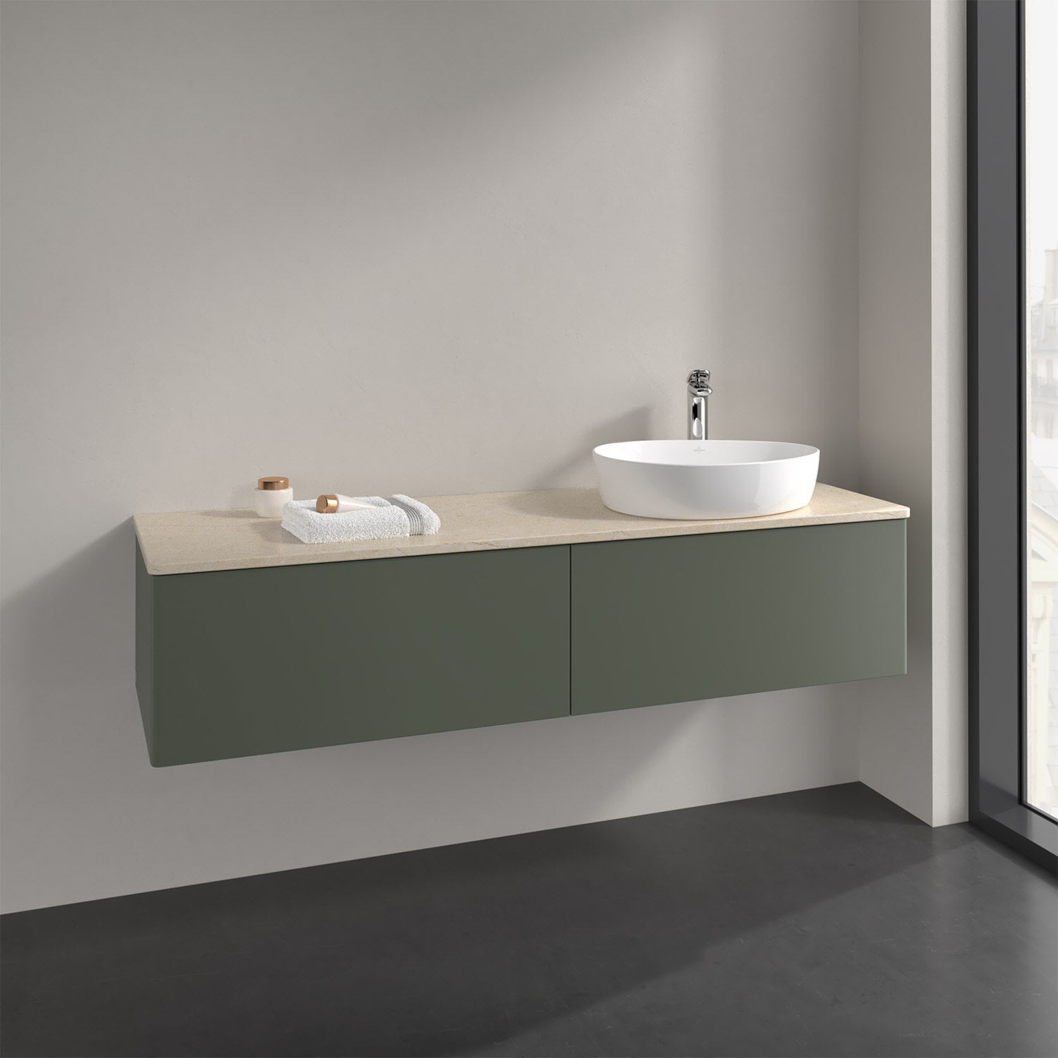 Villeroy & Boch Antao Waschbeckenunterschrank, 160 x 36 cm, 2 Auszüge mit LED-Licht, Front ohne Struktur, mit Hahnloch, für Waschtisch rechts