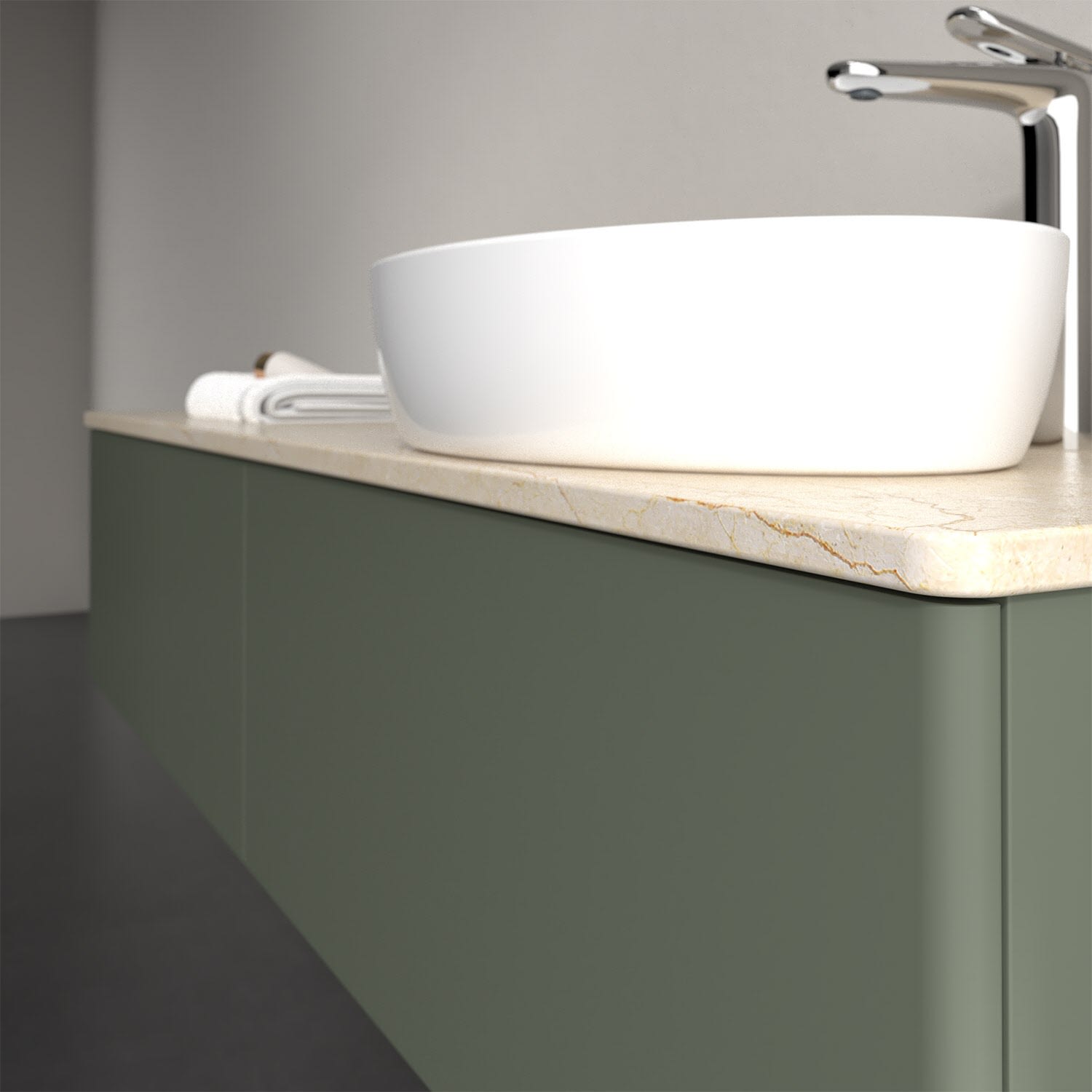 Für diesen Waschbeckenunterschrank stehen Ihnen Aufsatzwaschtische aus verschiedenen Serien zur Verfügung (siehe "Passliste" unter Downloads). Ein ausgewähltes Beispiel finden Sie im Zubehör. Den Waschtisch bitte separat mitbestellen.