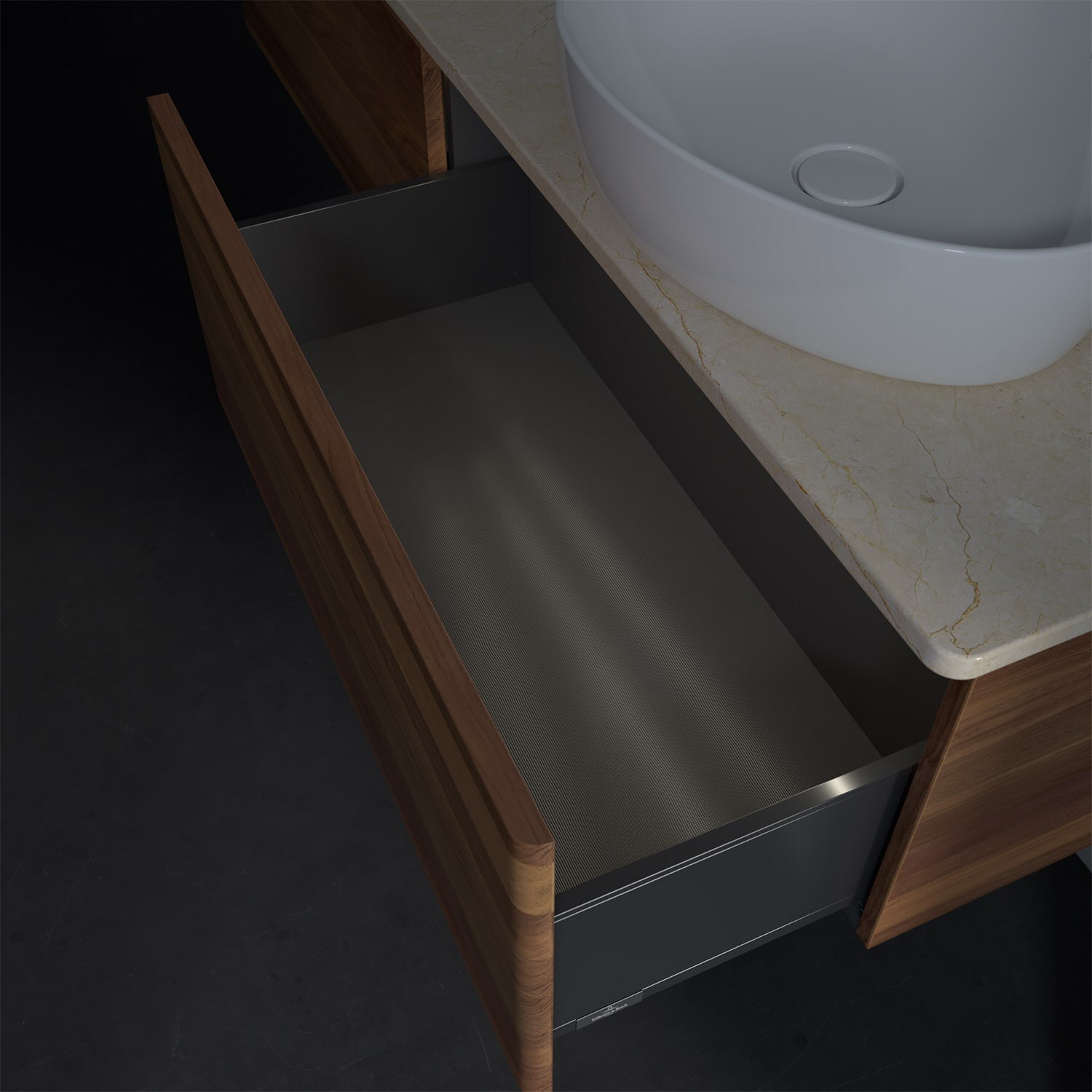 - kein Umfallen oder Verrutschen von Pflegeprodukten in den Schubladen dank rutschhemmendem Boden