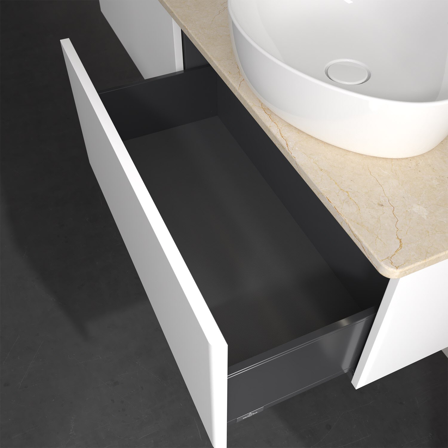 Villeroy & Boch Antao Waschbeckenunterschrank, 160 x 36 cm, 2 Auszüge mit LED-Licht, Front ohne Struktur, mit Hahnloch, für Waschtisch rechts