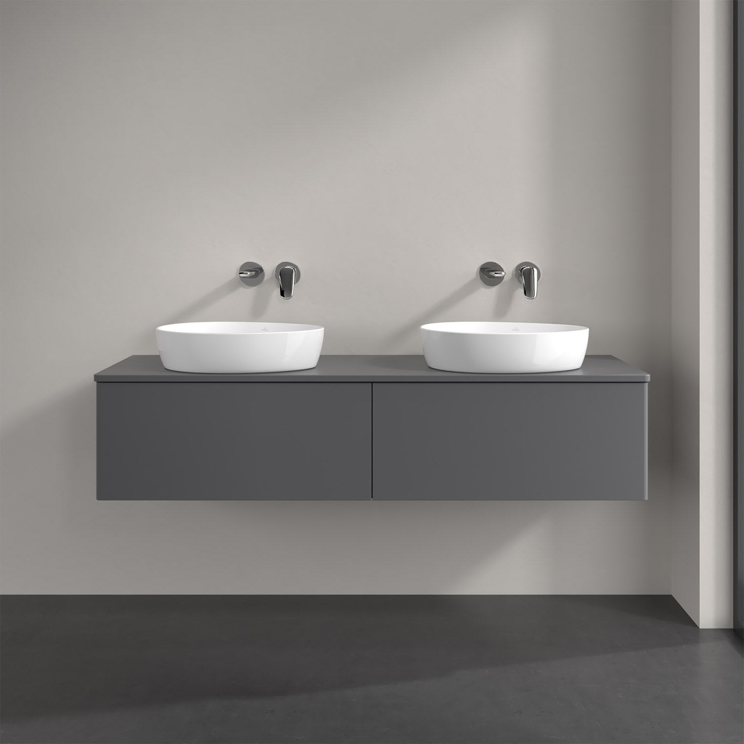 Villeroy & Boch Antao Waschbeckenunterschrank, 160 x 36 cm, 2 Auszüge mit LED-Licht, Front ohne Struktur, mit Hahnloch, für Waschtisch links und recht